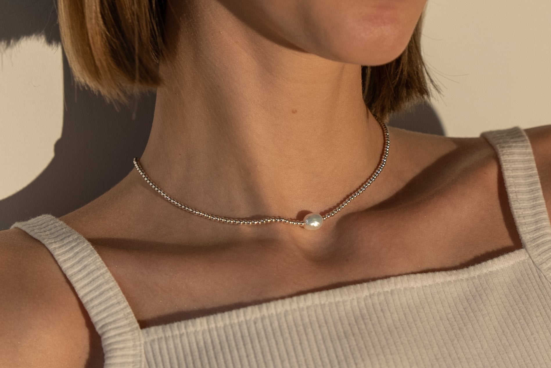 A modern twist on a timeless classic. The Adella Pearl Necklace features a genuine freshwater pearl and your choice of sterling silver or gold vermeil beads. Handcrafted with care, this piece exudes elegance and versatility, making it perfect for both everyday wear and special occasions.