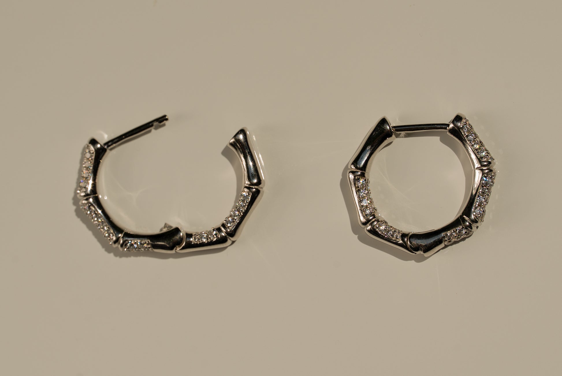 Angular Gem Hoops are a modern twist on classic sparkle. Their sculptural, faceted silhouette catches the light at every angle, with partial pavé CZ detailing for just the right amount of shine.