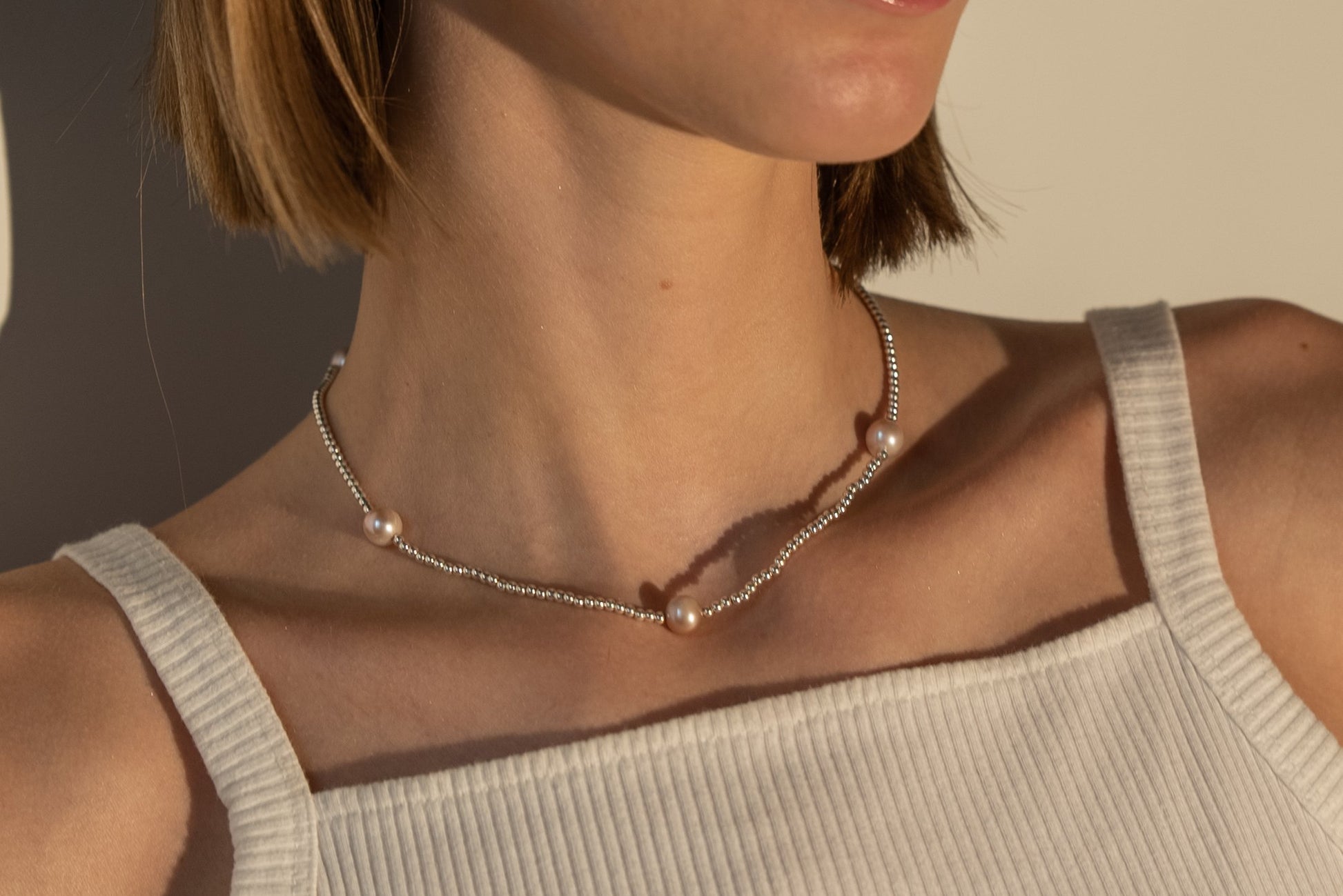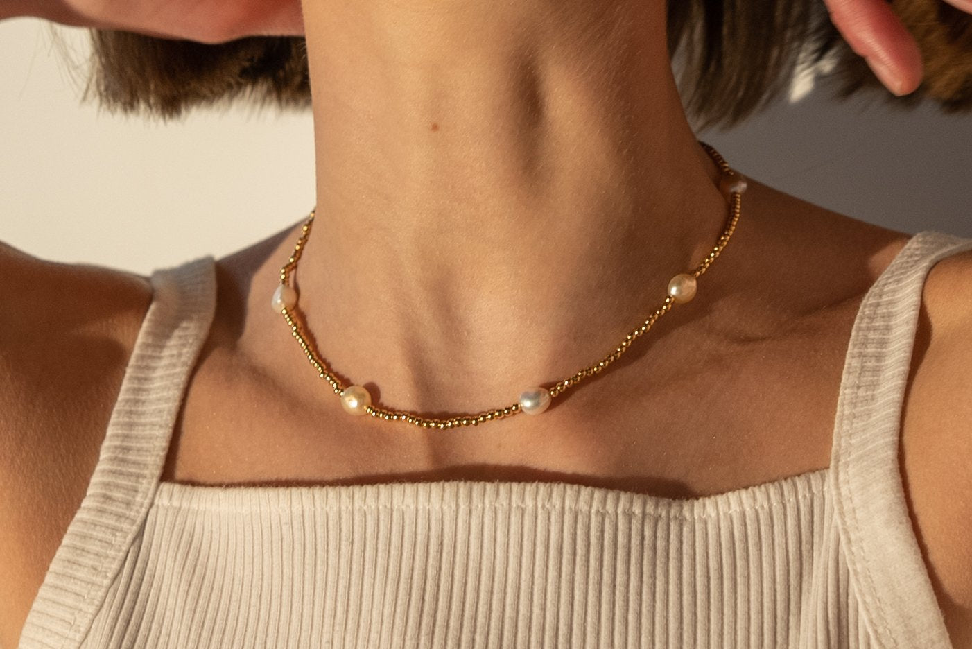 Delicate, dreamy, and undeniably bold. The Attina Pearl Necklace is a modern ode to classic pearls. Featuring luminous genuine freshwater pearls and high-shine gold vermeil or sterling silver beads, this piece is hand-strung to perfection for a soft statement that goes with everything.