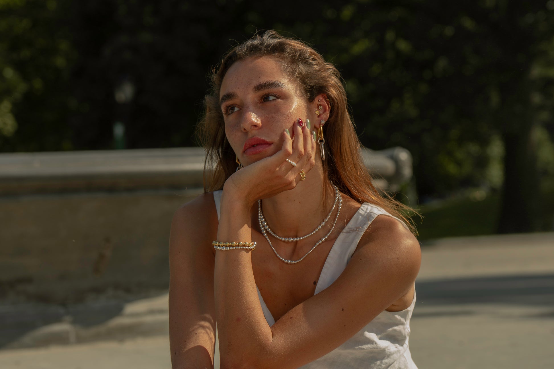 Balancing Act Necklace mirrors the rhythm of its bracelet counterpart with beads that shift from small to large in a seamless flow. Worn alone or layered, it’s a piece that feels both modern and timeless ~ soft in movement, yet bold in presence.