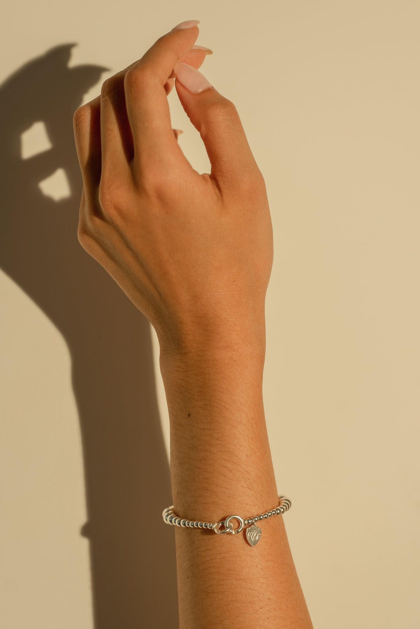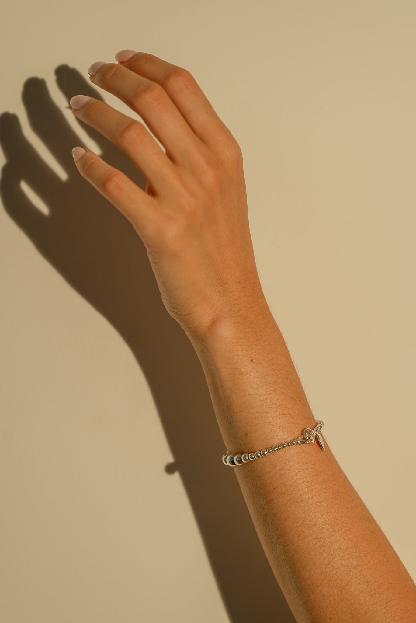Balancing Act Bracelet features beads that grow from small to large in a flowing rhythm ~ a subtle play on balance and movement. Finished with our signature interlocking clasp and pendant, it’s a piece that feels both effortless and iconic.