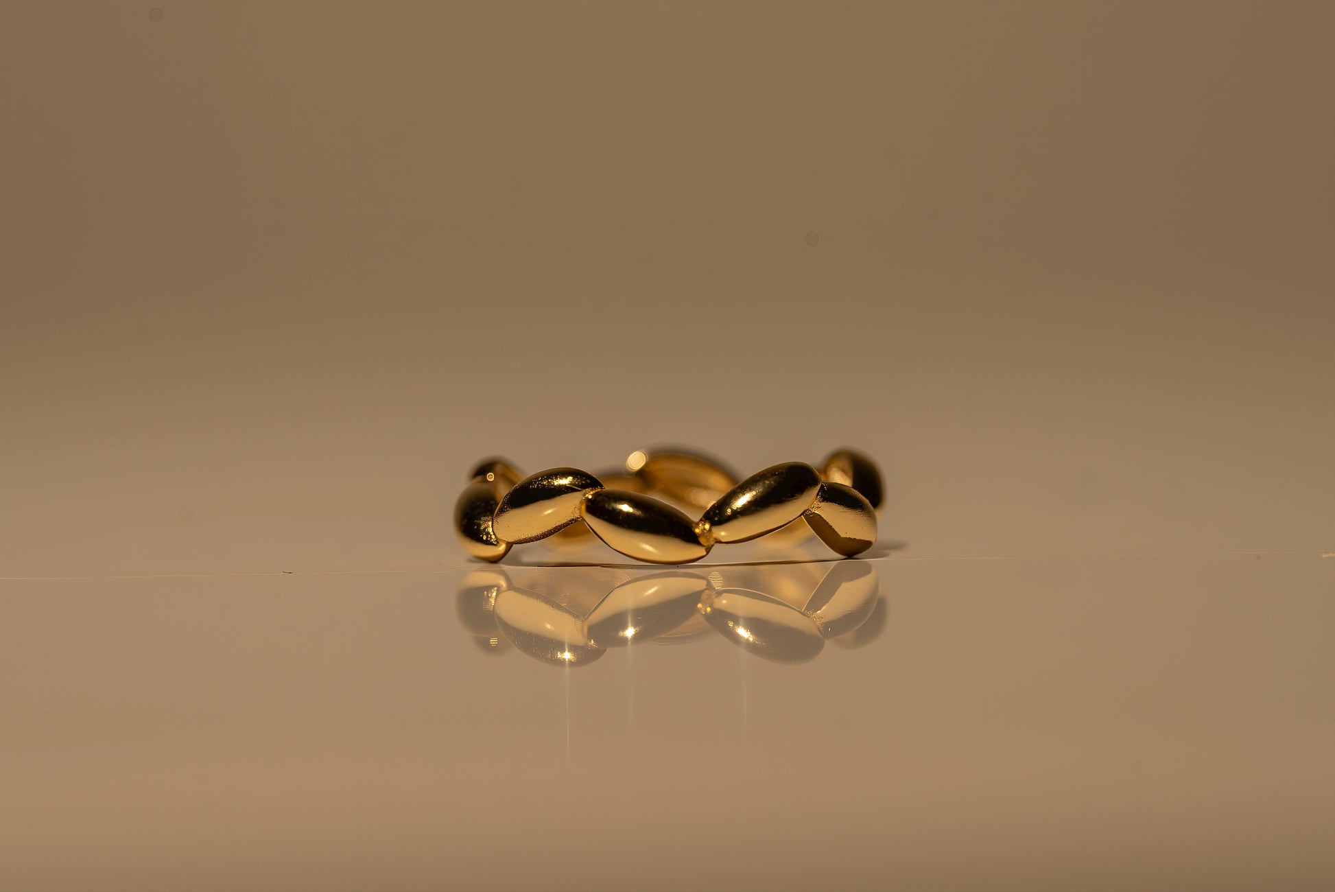 This radiant band features a continuous sequence of stylized grain motifs, connected end-to-end to form an unbroken circle of gold. Each volumetric link is sculpted with soft, rounded curves and polished to a brilliant mirror finish, creating a "liquid gold" effect that catches the light from every angle. It is a deeply tactile piece ~ smooth to the touch and rich in visual texture ~ designed to bring a sense of warmth and abundance to your daily ring stack.