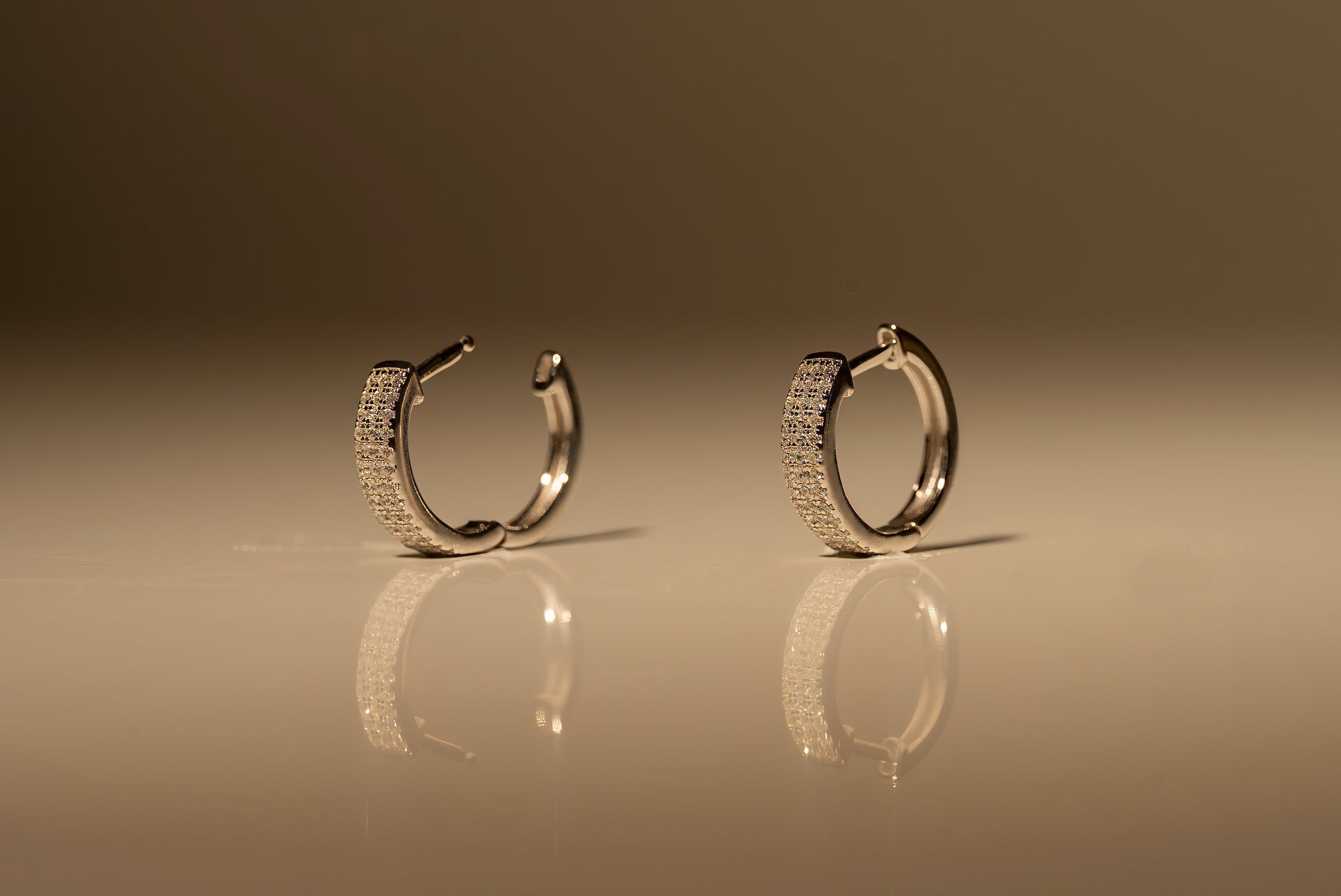 These sculptural hoops redefine everyday brilliance by merging a voluminous, rounded silhouette with a refined ribbon of light. The result is an amplified "glam" profile that feels both substantial and sophisticated. Polished to a radiant, mirror-like sheen and accented by a meticulous line of pavé-set CZ gems, they capture and refract light with every movement. They are the ultimate statement of versatile luxury; bold enough to anchor a look, yet refined enough for effortless daily wear.