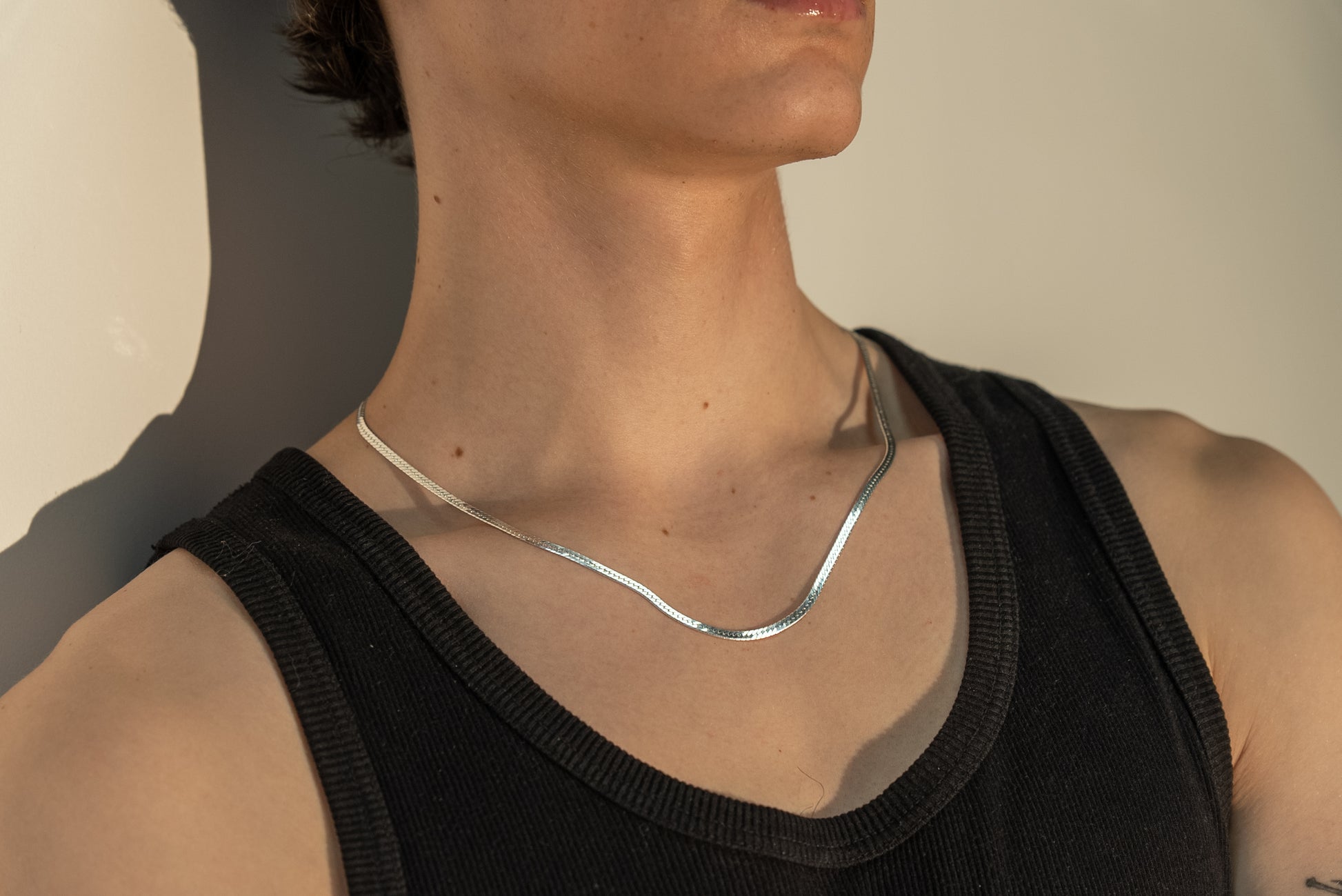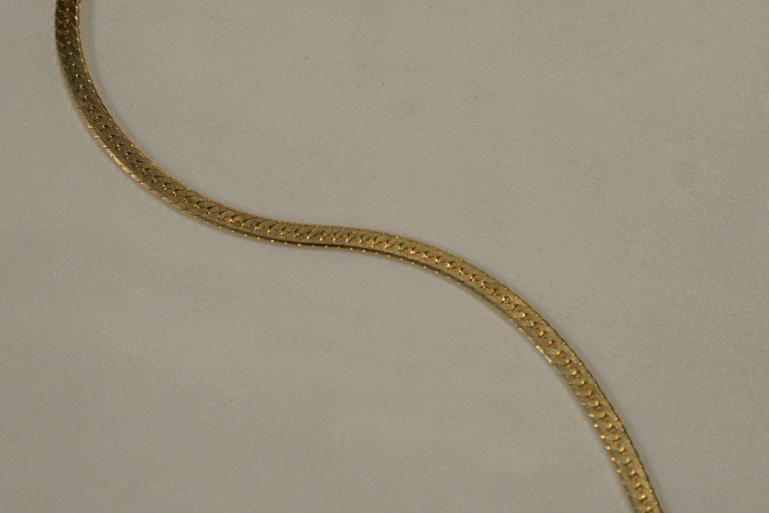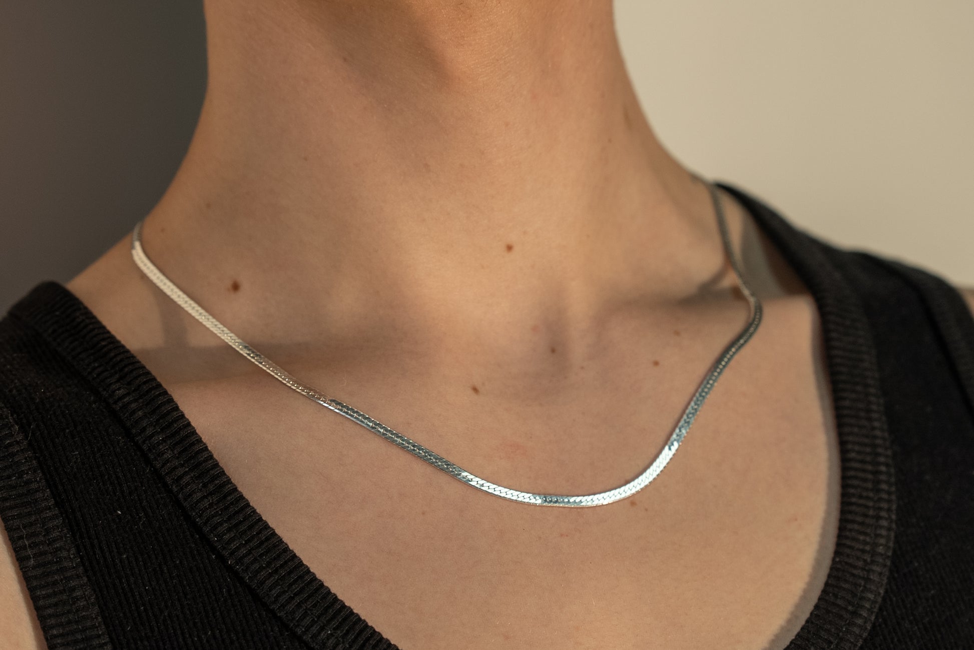 A modern twist on the classic flat chain, this design features a subtle braided texture that adds dimension and movement while lying sleek against the skin. Versatile and effortlessly stylish, it’s the piece you’ll layer daily or let shine on its own.