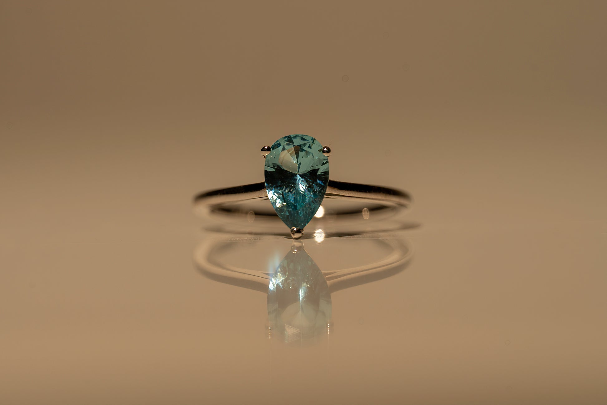 A drop of pure light. This refined ring creates a moment of stillness with a single, precision-cut pear gemstone. The teardrop silhouette is held in a minimalist three-prong architectural setting ~ a deliberate design choice that protects the stone’s delicate point while leaving the curves open to flood with light. The result is a gem that appears to float weightlessly above the band, offering a flash of oceanic brilliance that moves with you. It is a timeless silhouette, celebrated for its ability to visually lengthen the finger and add a touch of grace to the hand.