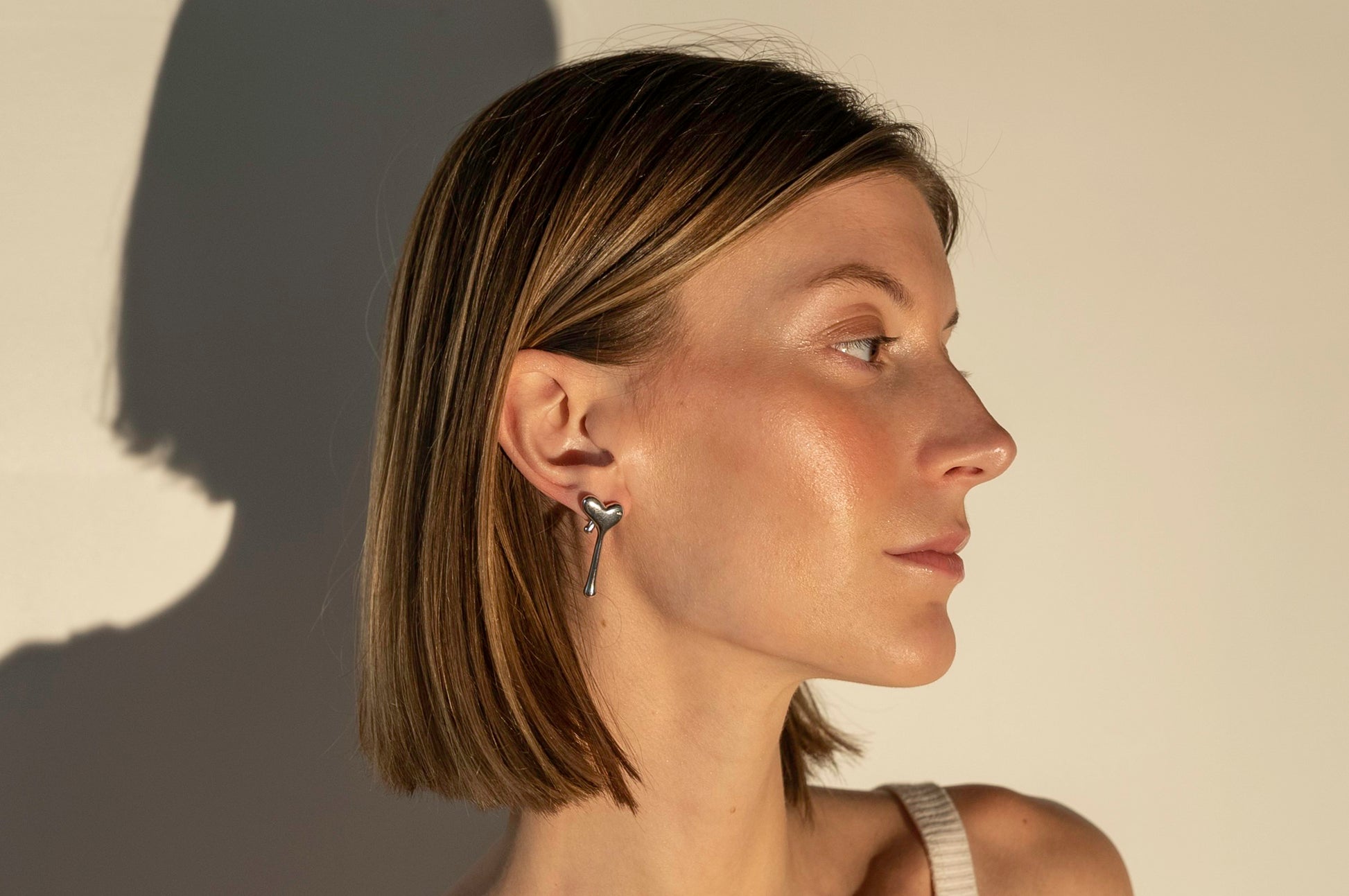 Cordelia Earrings reimagine the heart in a liquid form, available in two styles: a compact melt or a longer dripping silhouette, each with a soft-to-touch finish.