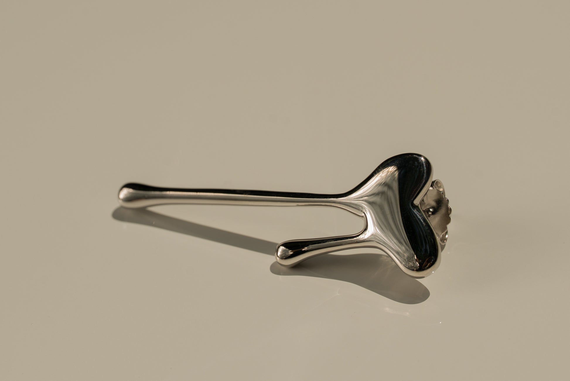 Smooth, molten-inspired finish with sculptural detail for a bold yet refined edge.