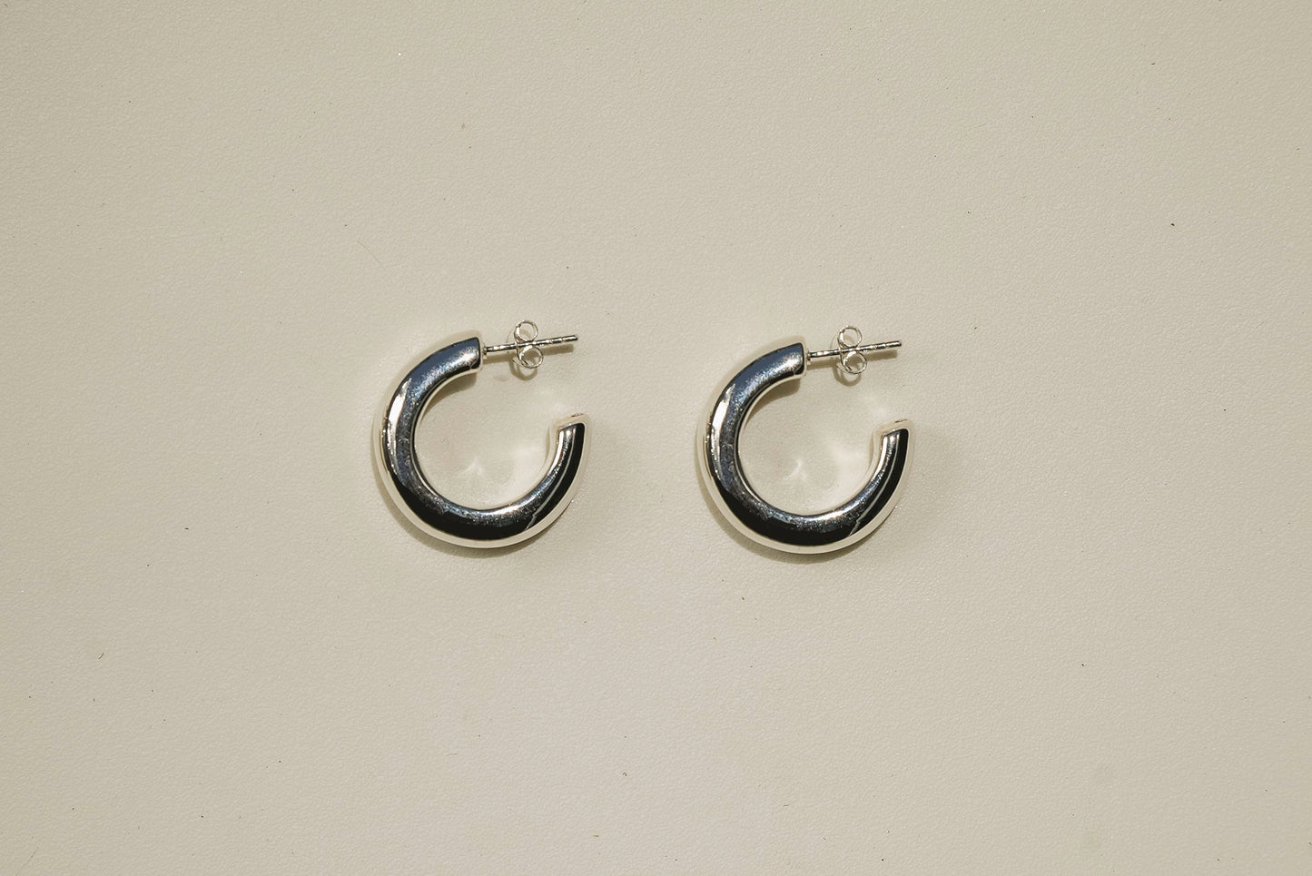Crescent Hoops feature smooth, rounded curves with a hollow construction, making them bold in look yet soft and comfortable to wear.