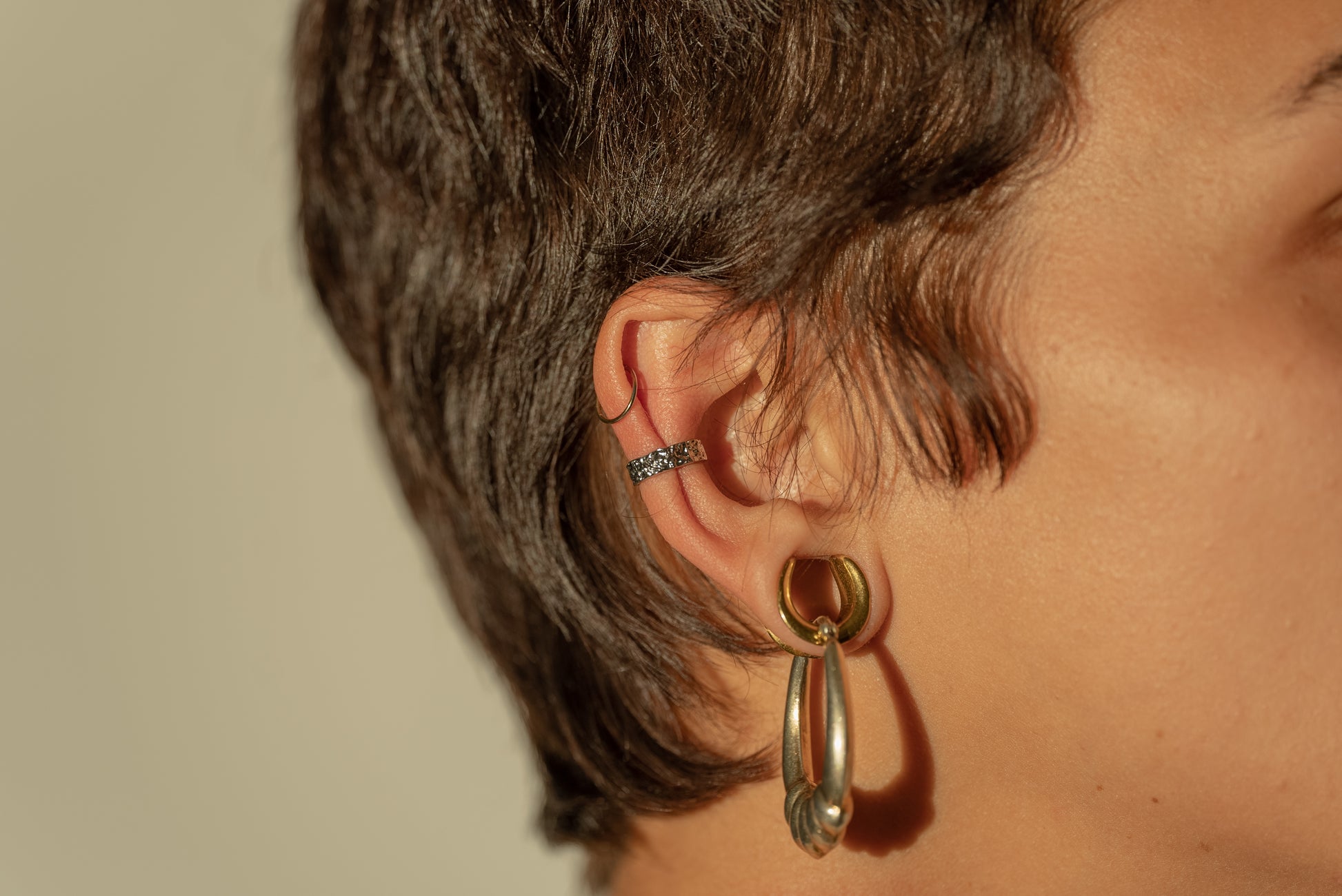 A textured twist on a classic ear cuff, the Crinkle Cuff adds subtle edge with its hammered finish, no piercing required.