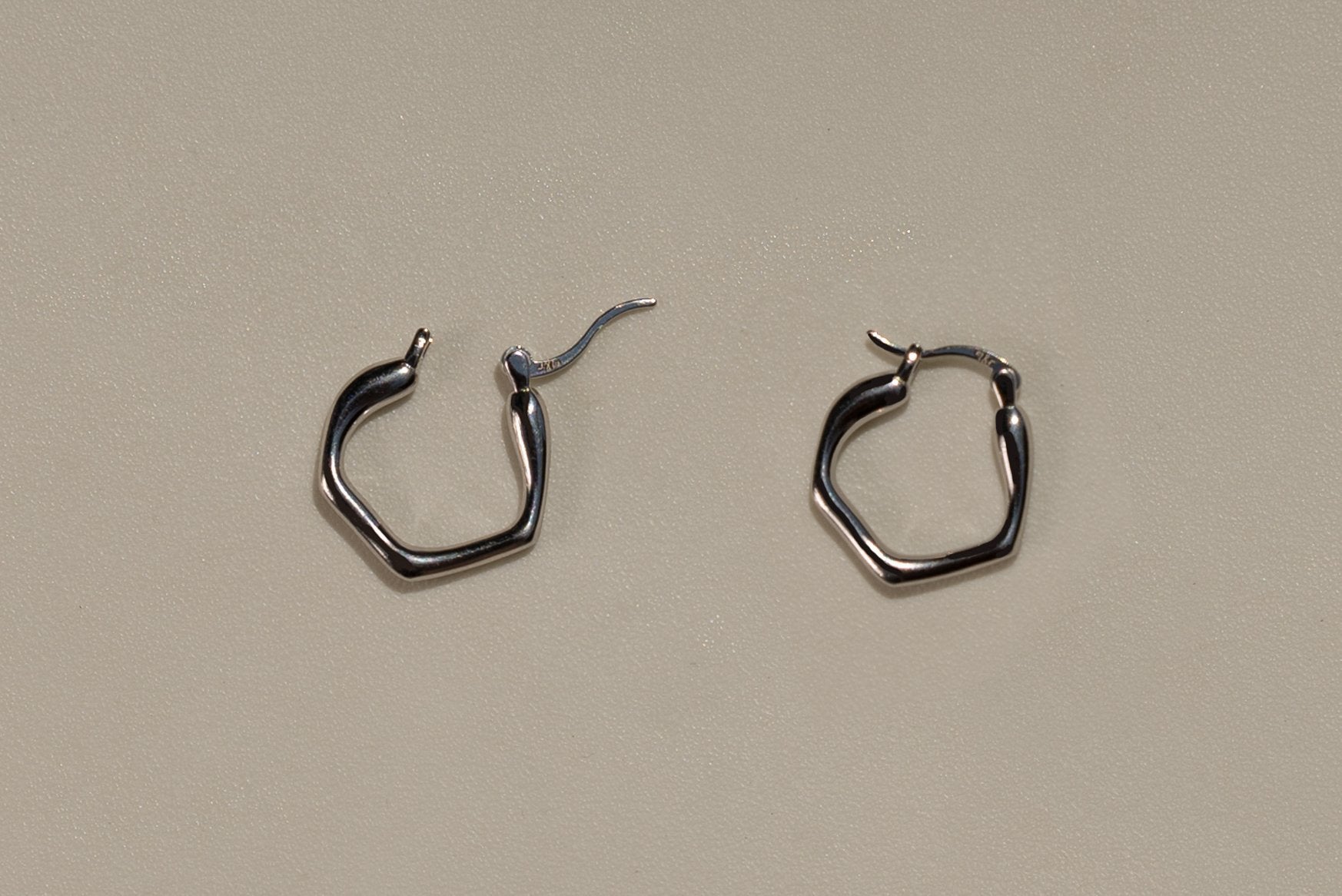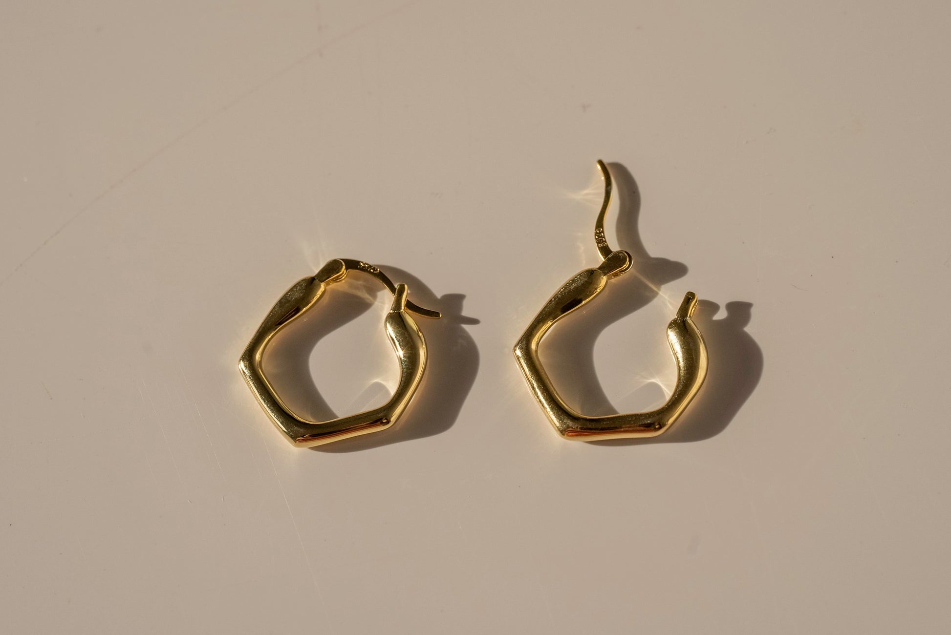 The Fluid Hexagon Hoops reimagine a classic shape with softly curved, organic edges. Their modern silhouette makes them versatile enough to wear as a subtle statement on their own or layered with other hoops for a bold, stacked look. Available as a single or a pair, in sterling silver or radiant gold vermeil.