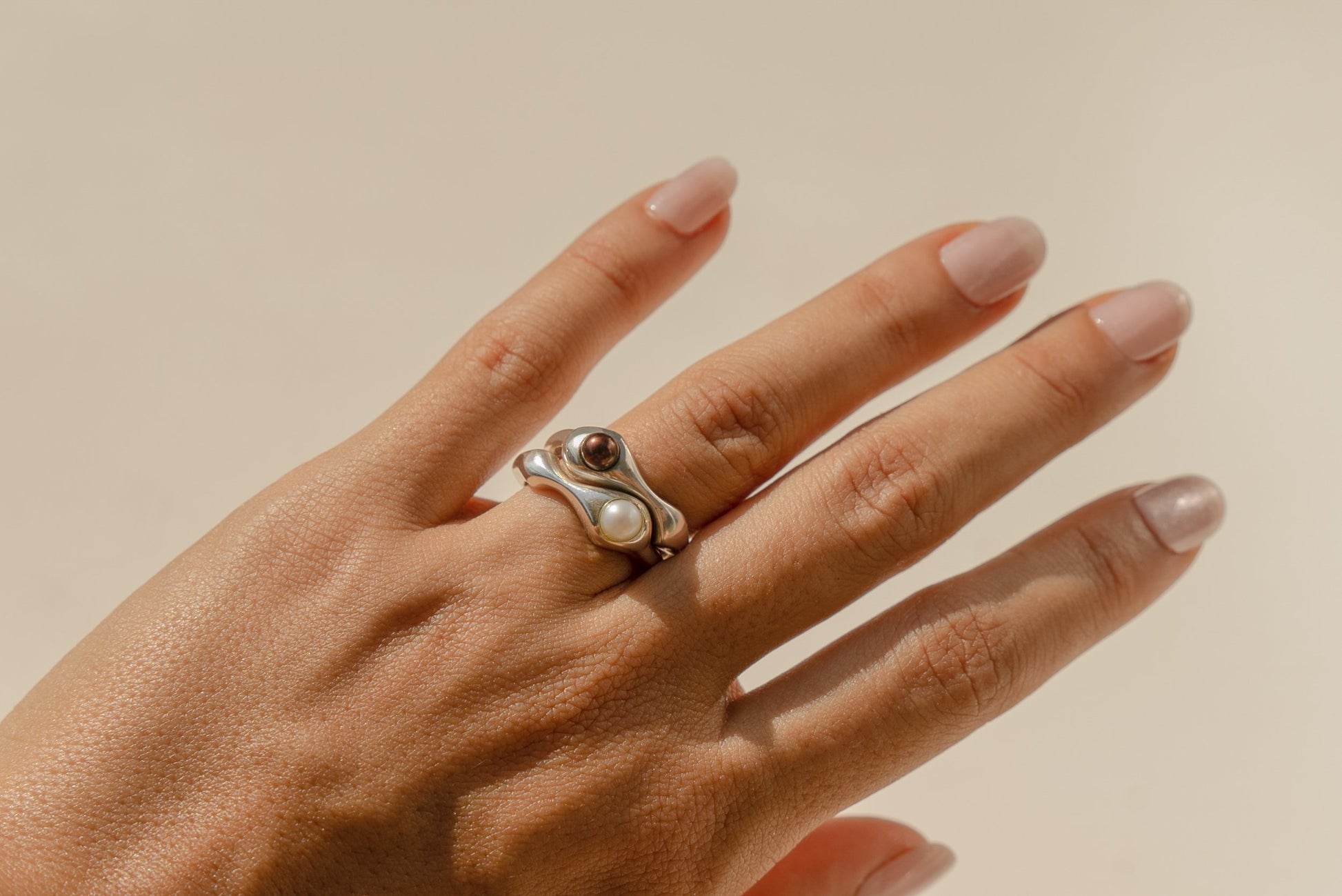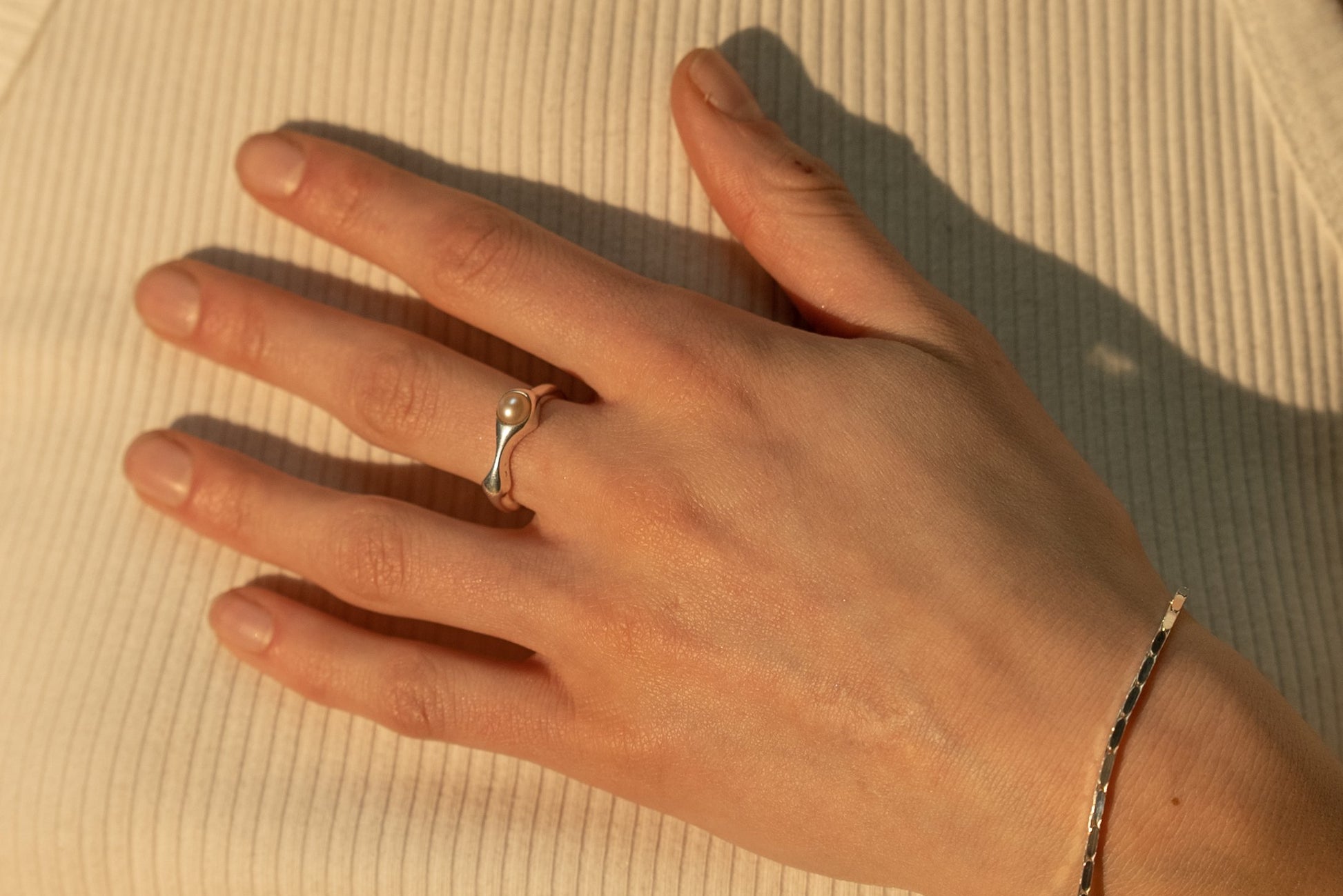 Inspired by the everlasting ebb and flow of the ocean, each ring is made around a carefully selected genuine pearl. No two Fluid Pearl Rings are exactly alike. Truly a one-of-a-kind piece, we let nature take the lead with this one.