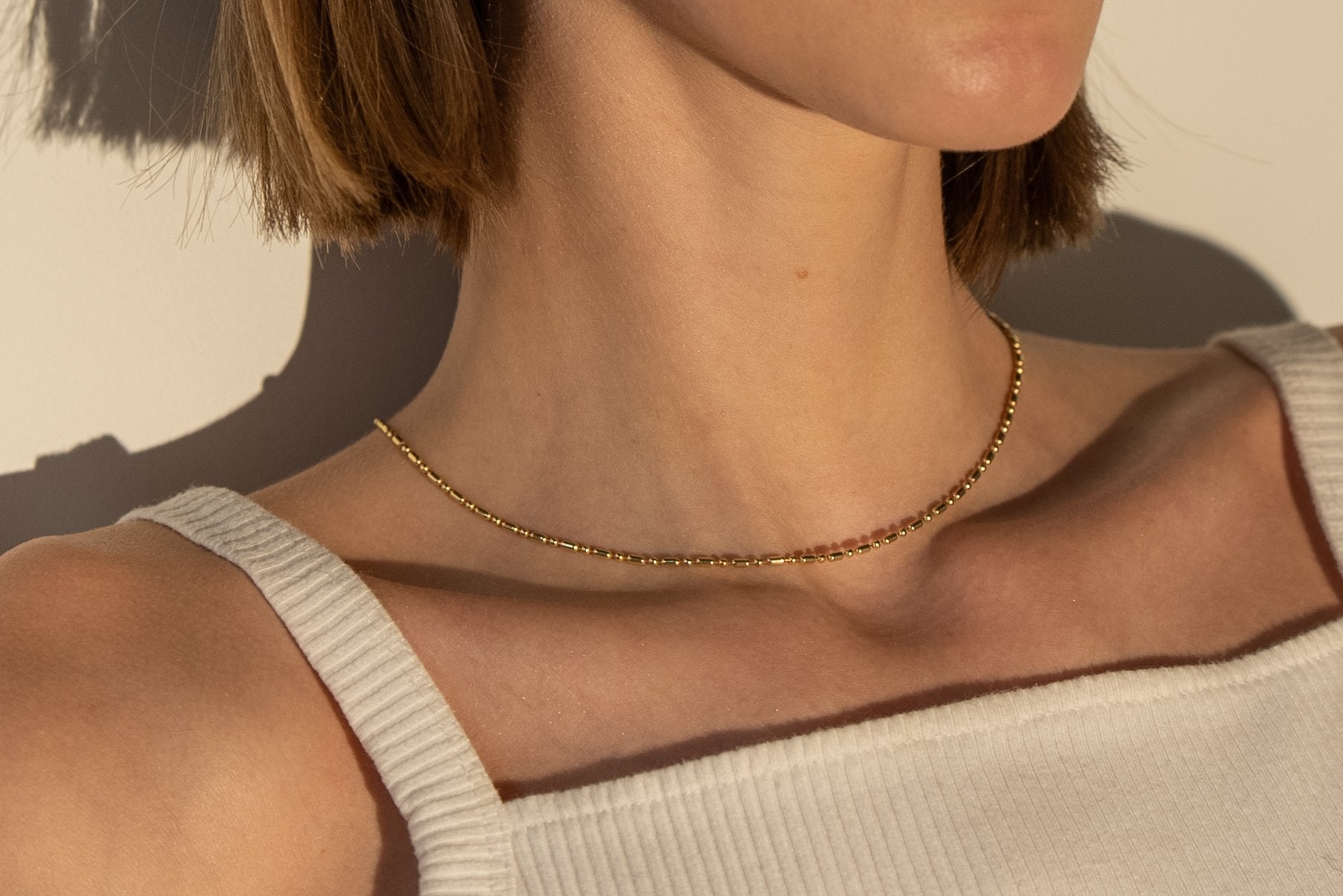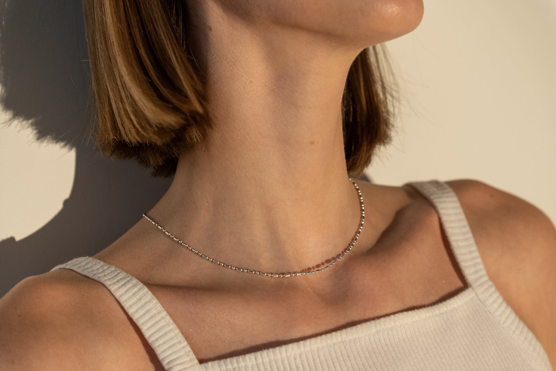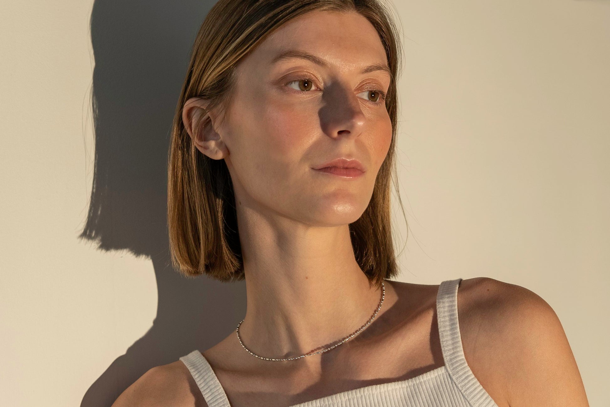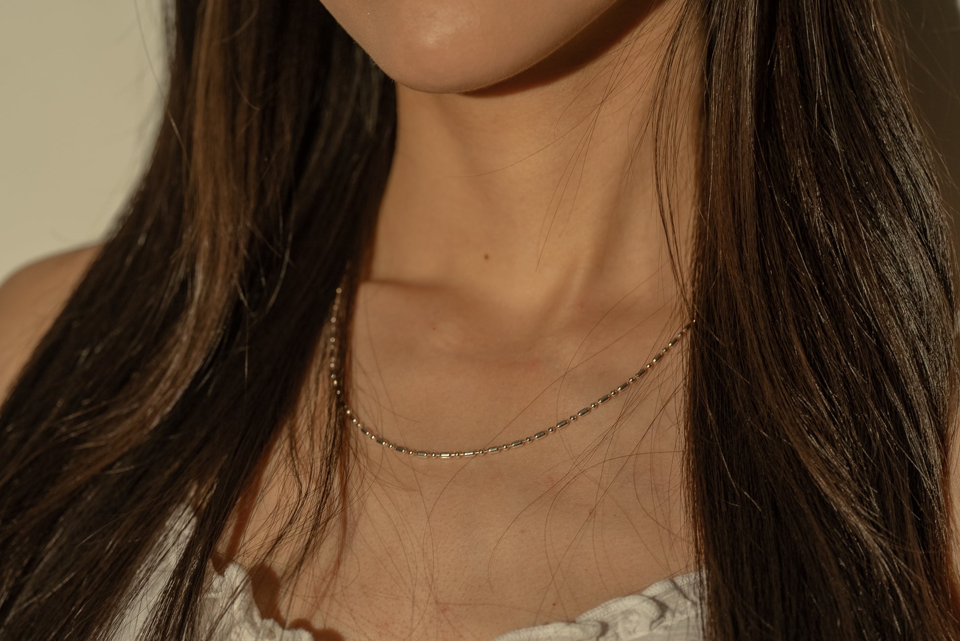 Geo Chain features polished geometric links that reflect light with every movement. Bold yet refined, it’s a versatile staple that can be worn alone for a sleek statement or layered to create depth and dimension.