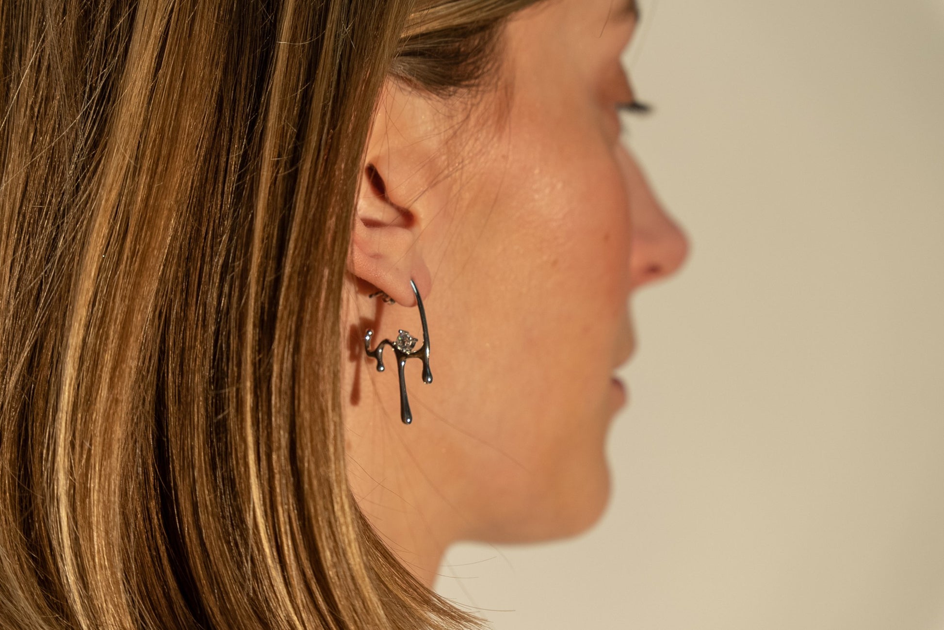 Glisten Earrings feature molten drips centered with high-quality cubic zirconia, catching light with every movement.