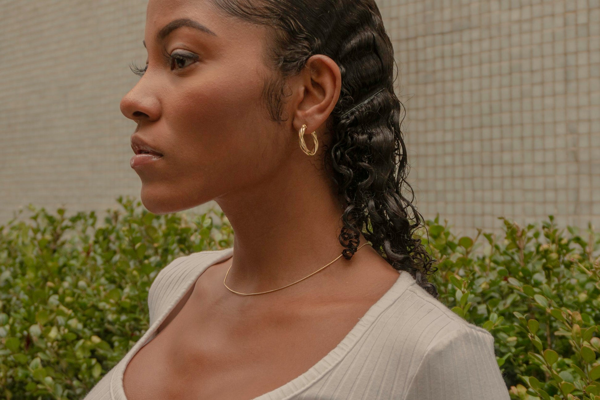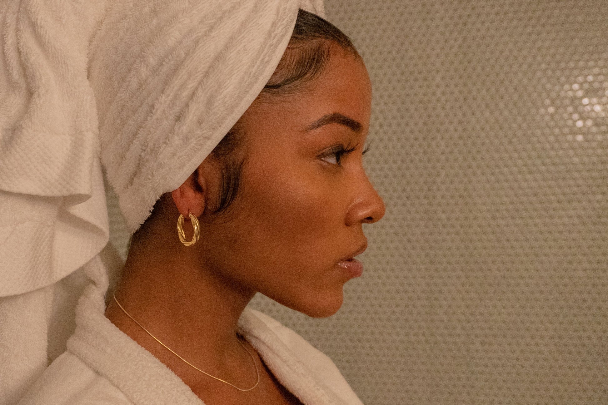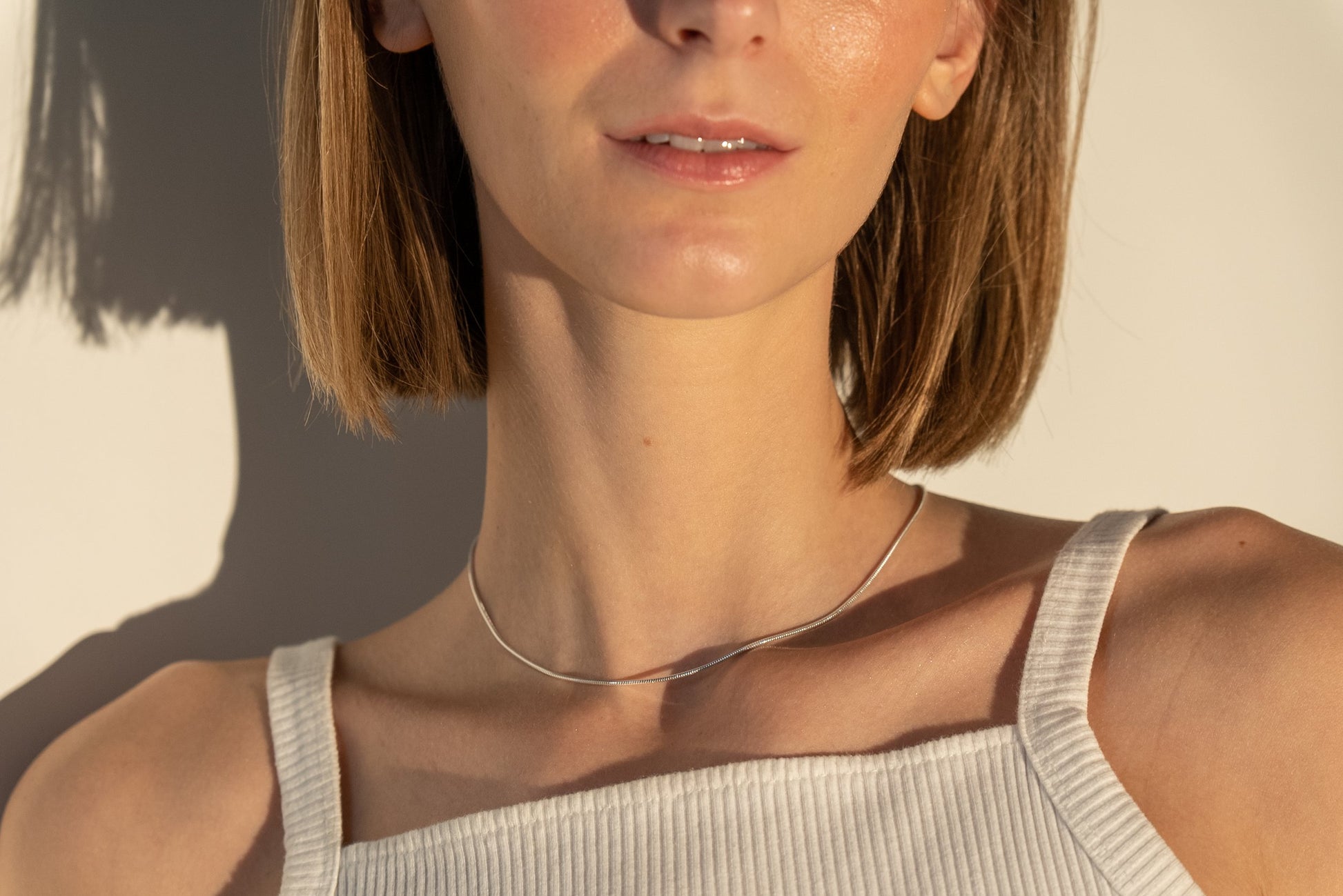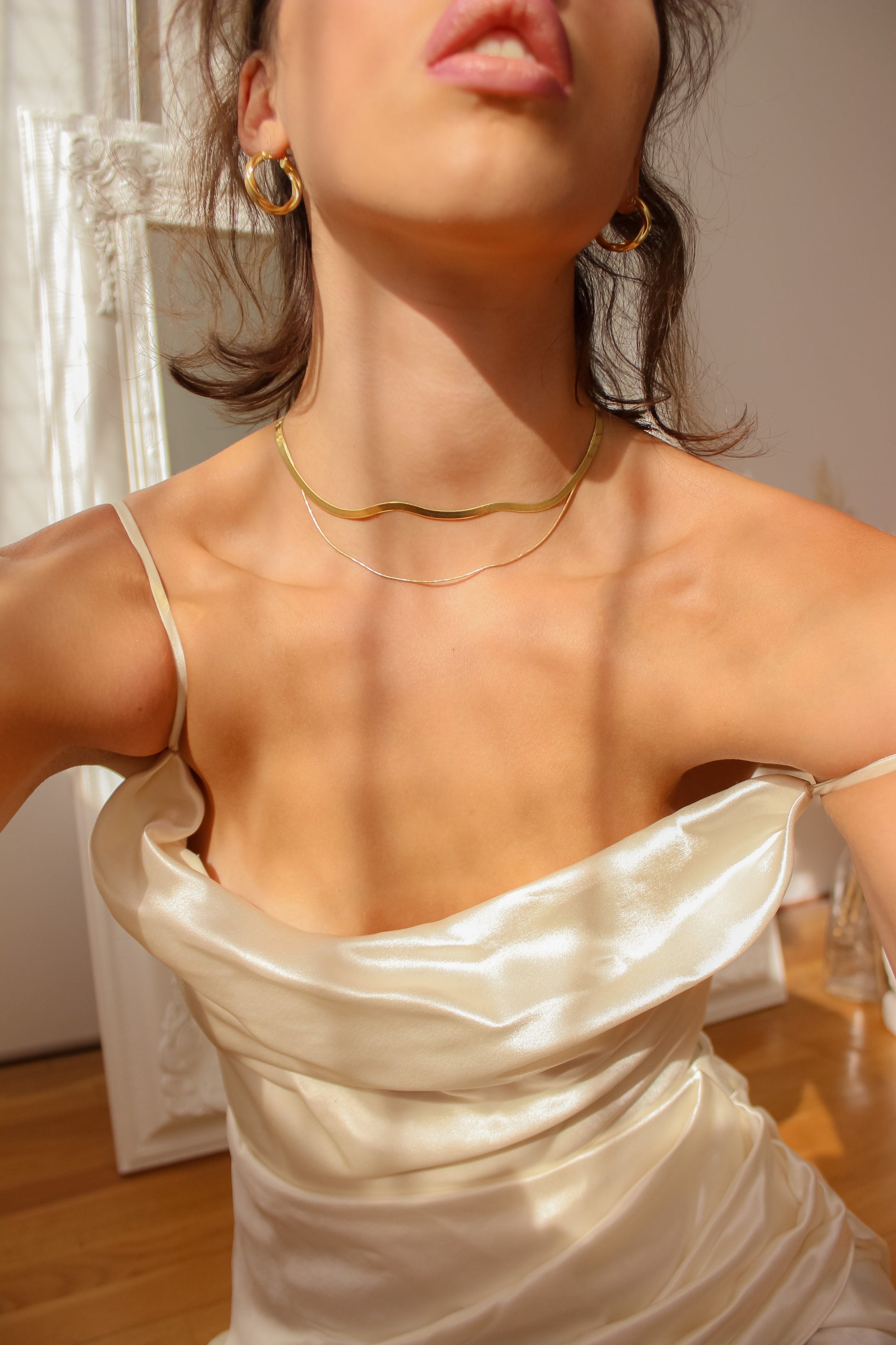 Glow Chain is crafted with a sleek, fluid silhouette that lays like liquid light across the neckline. Minimal yet striking, it’s the chain that elevates both everyday and evening styling with effortless elegance.