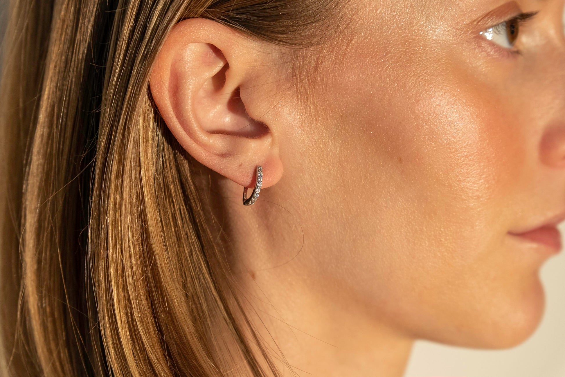 Hailey Hoops are designed for those who love a whisper of shine. With a slim profile, pavé-set CZ gems, and a secure hinged back, they’re the definition of understated elegance. Perfect for everyday layering or as a subtle solo statement.