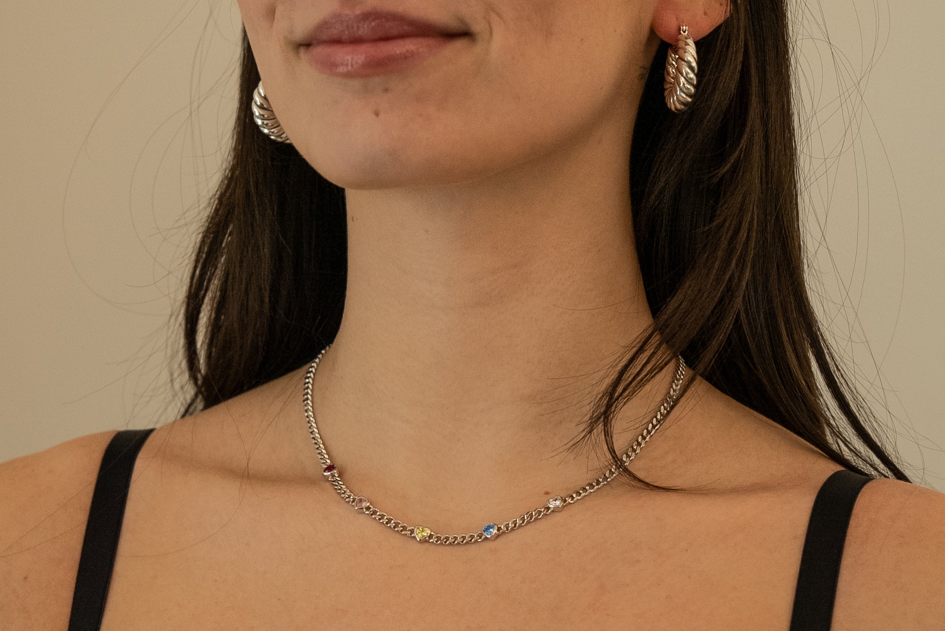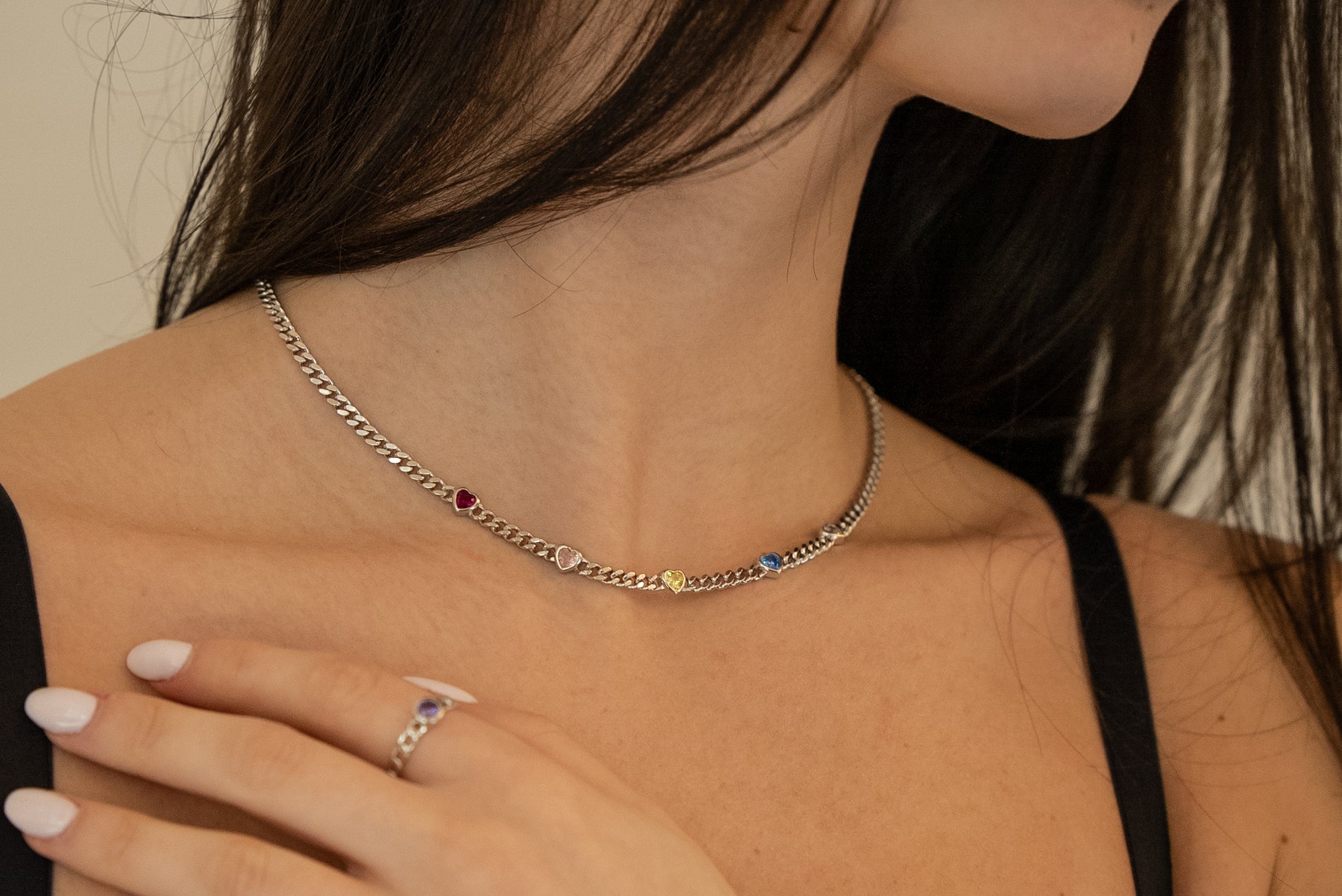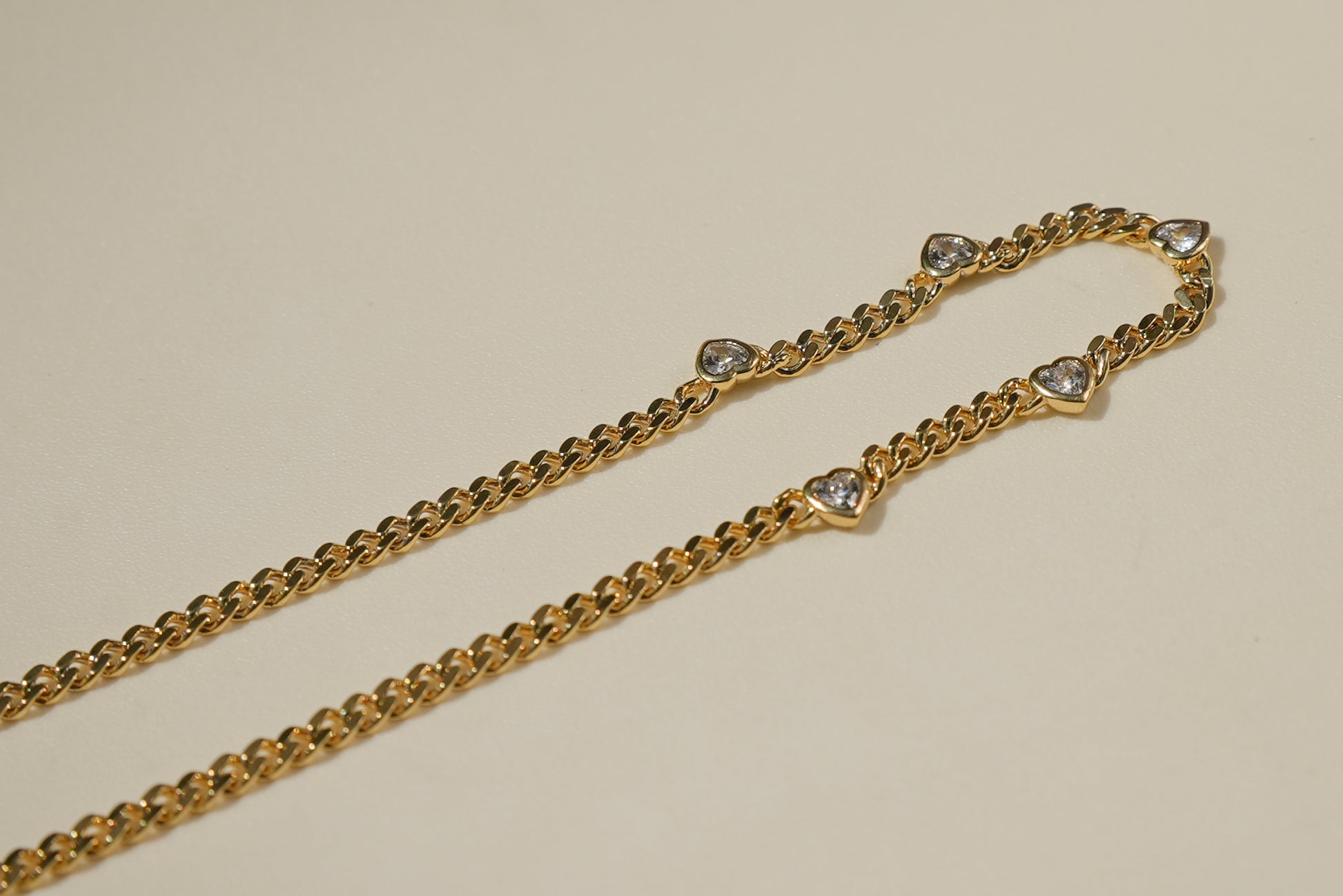 Heartbreaker Necklace is crafted with a heavyweight curb chain accented by four bezel-set CZ heart gems across the front. Designed to strike the balance between strength and softness, it’s a statement piece made to stand out.