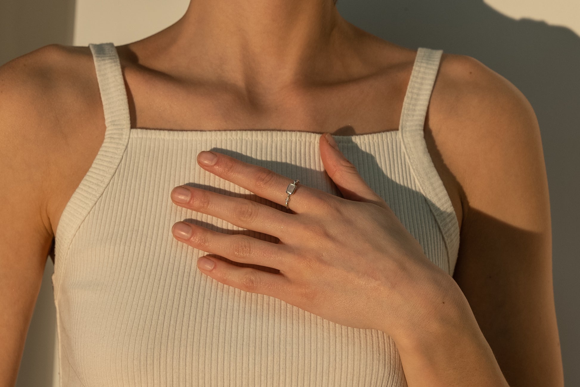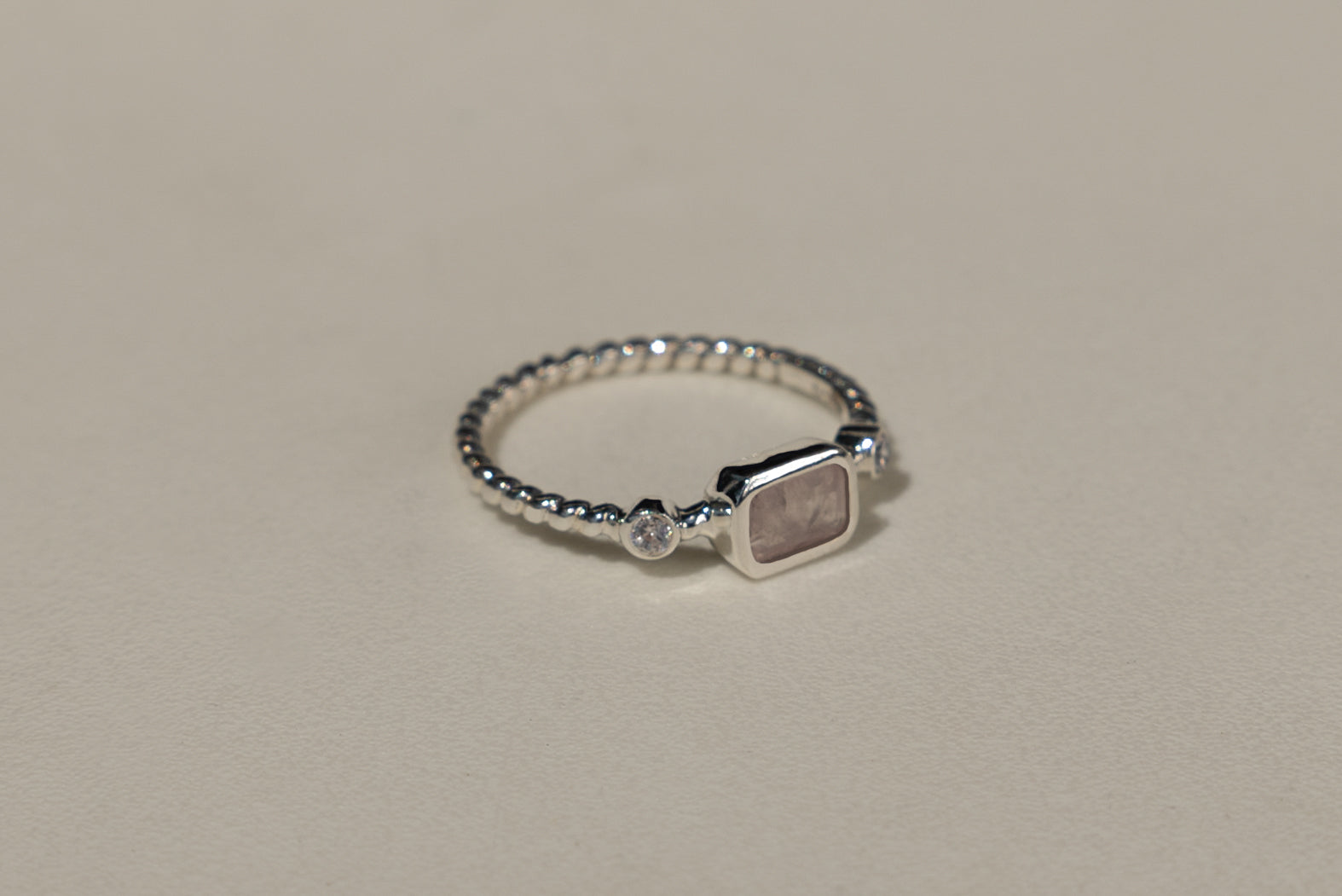 Lucky Stone Ring is a handmade piece designed to be both meaningful and timeless. Each ring features one carefully selected natural gemstone at the center, framed by two sparkling cubic zirconia accents on either side.