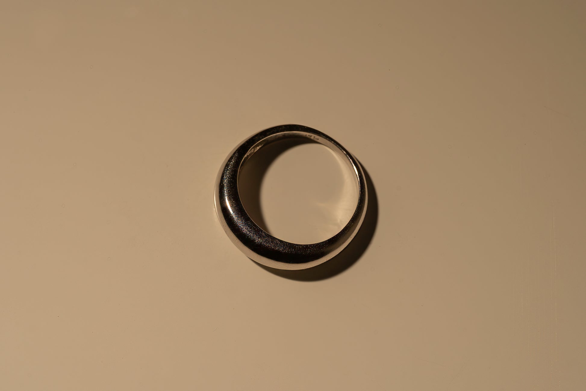 Luna Ring makes a bold statement with its sculptural, high-volume silhouette. Defined by its smooth, puffed curves and mirror-like finish, it balances substantial visual weight with a comfortable, tapered fit. A modern essential that elevates any look, whether worn solo on the index finger or stacked for contrast.