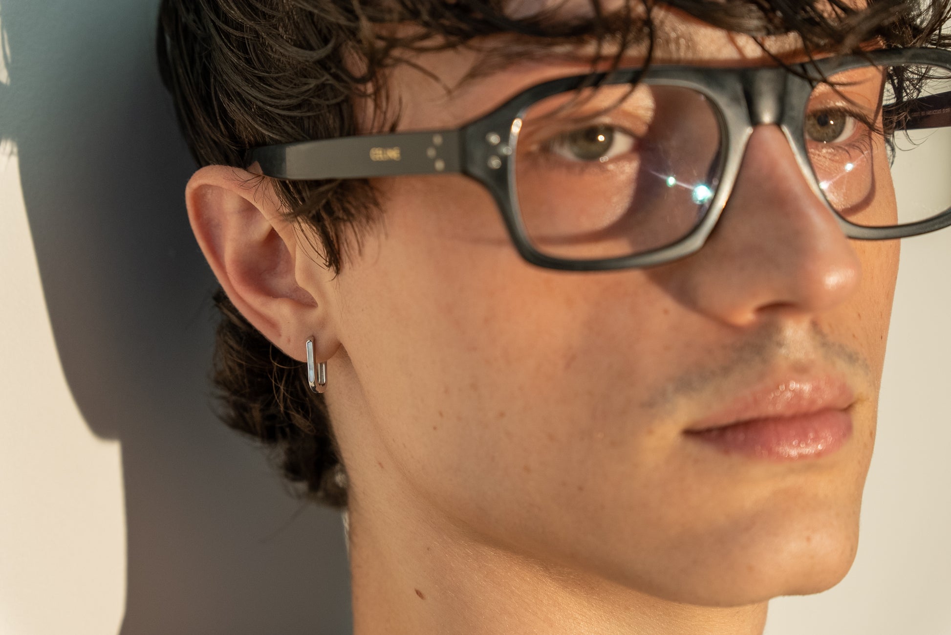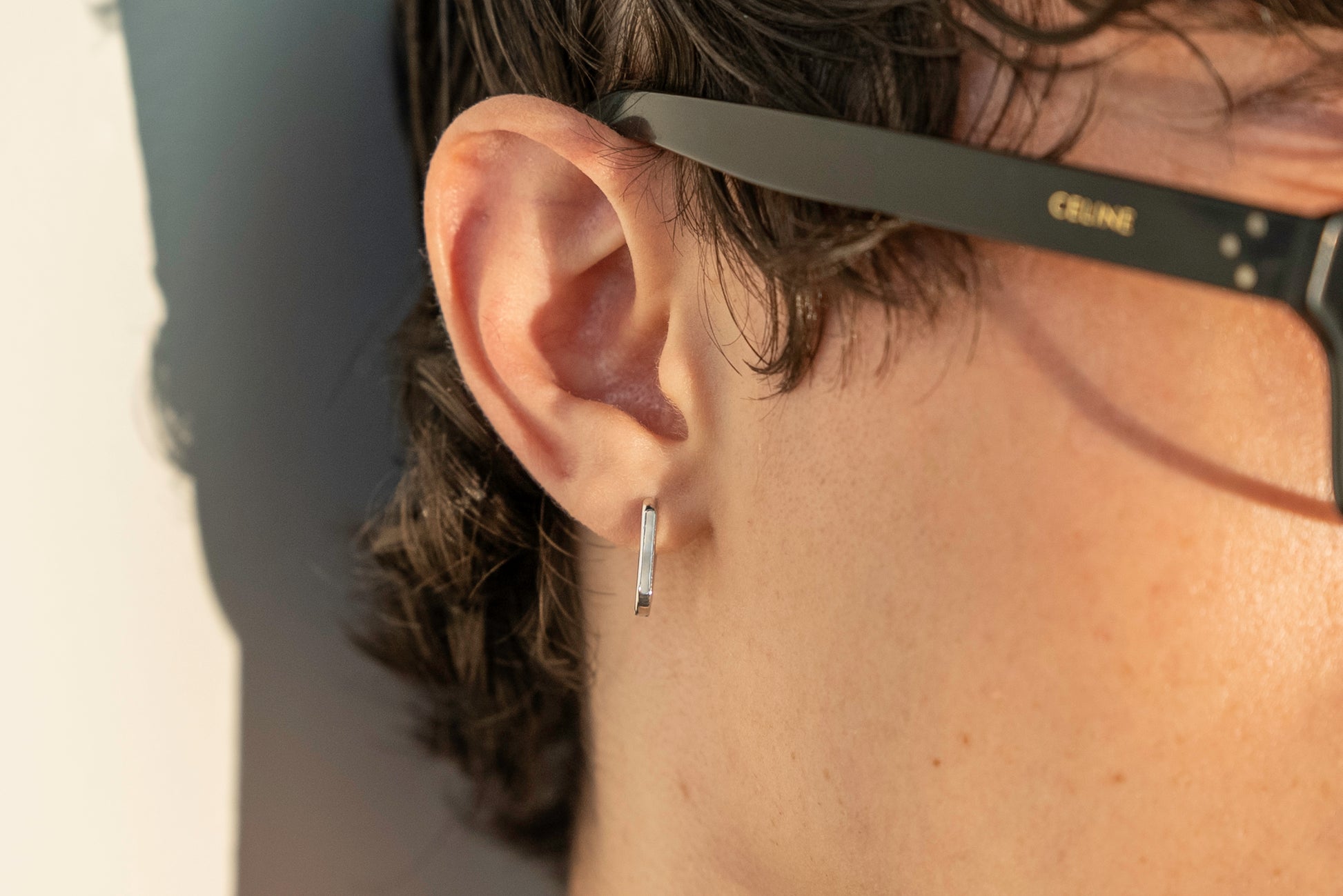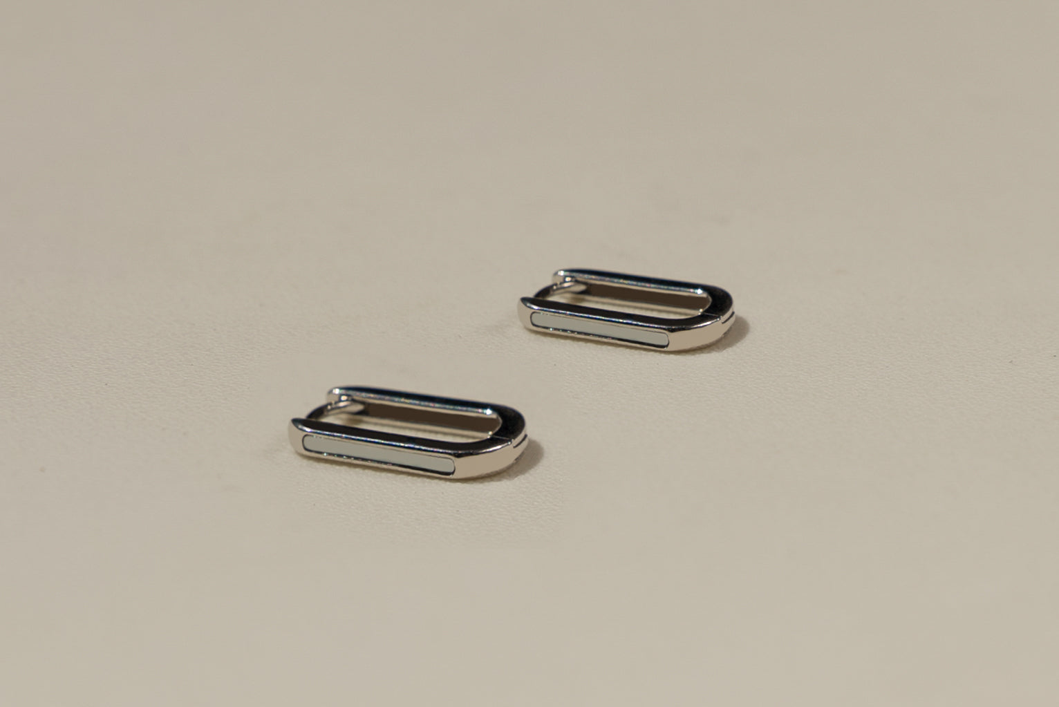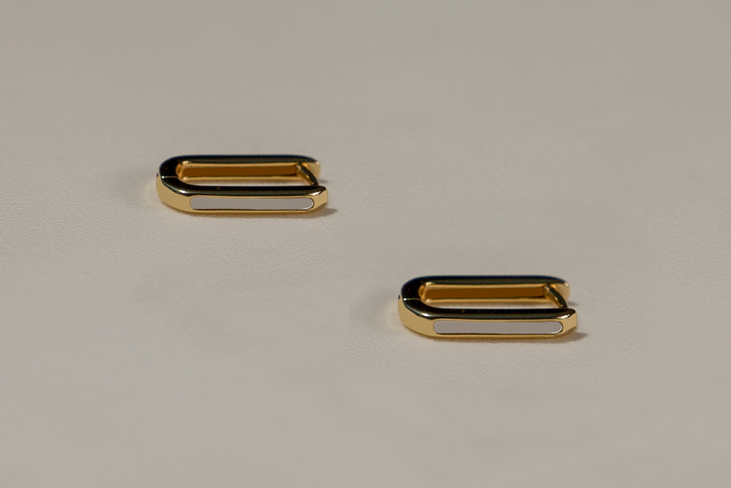Mini Square Hoops feature sleek geometric lines accented with subtle mother-of-pearl inlay, making them perfect for daily wear or layered stacks.