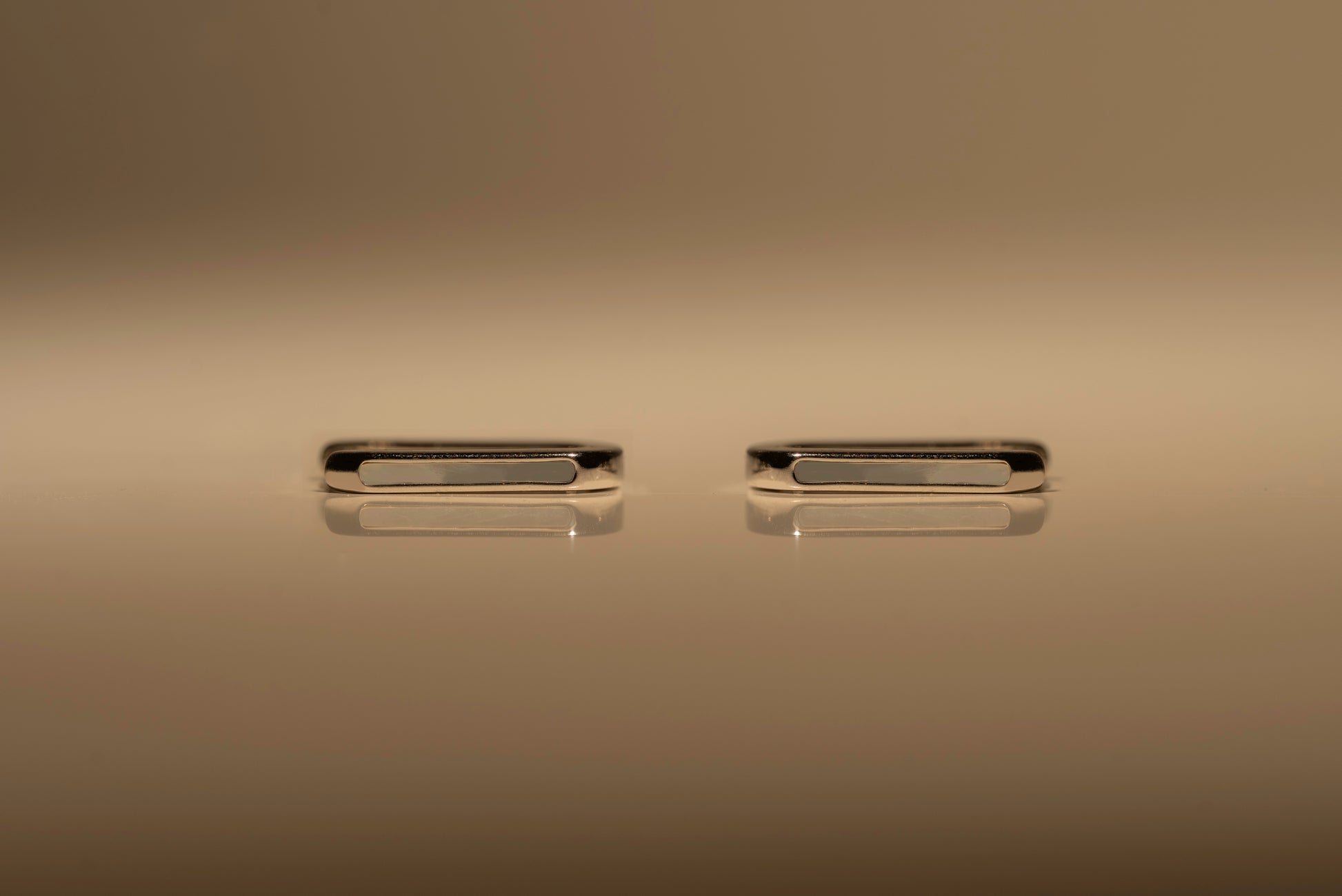 These structural hoops reimagine the classic everyday huggie with a tailored, architectural square silhouette. Along the outer profile, a precise geometric channel is expertly set with a flush inlay of natural mother-of-pearl, offering an unexpected flash of iridescence from the side view. This intentional, hidden placement creates a design that feels both highly structured and softly luminous. Polished to a brilliant finish, they offer an understated, sophisticated edge that seamlessly elevates your daily uniform.