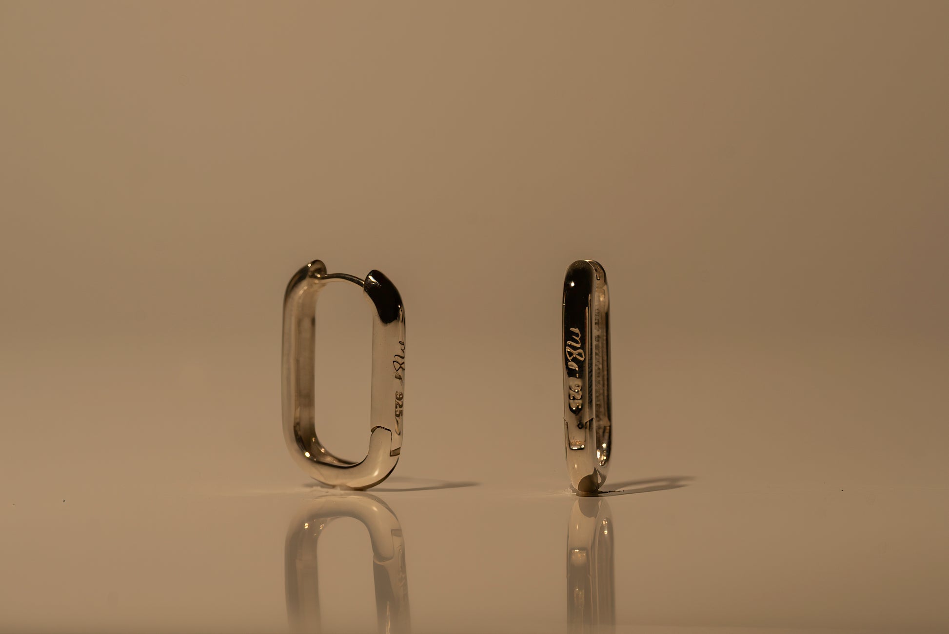 Architectural Design: A clean, squared "paperclip" silhouette that provides a fresh, modern alternative to the traditional round hoop.