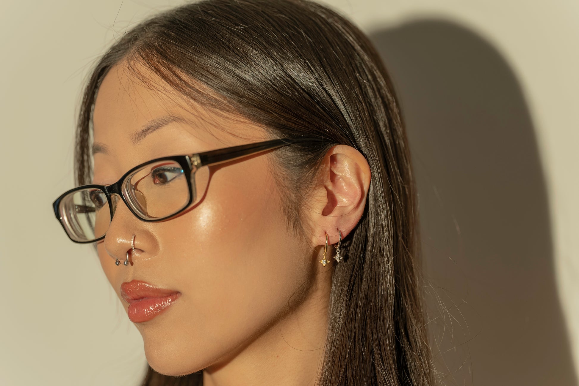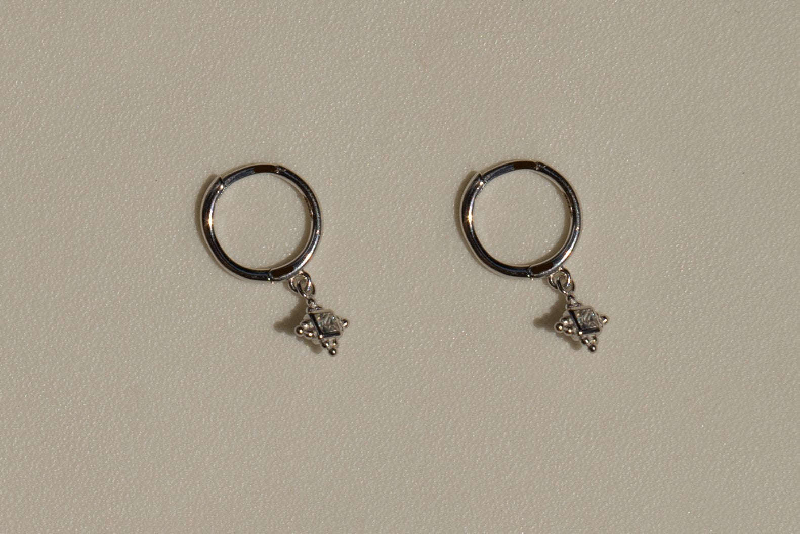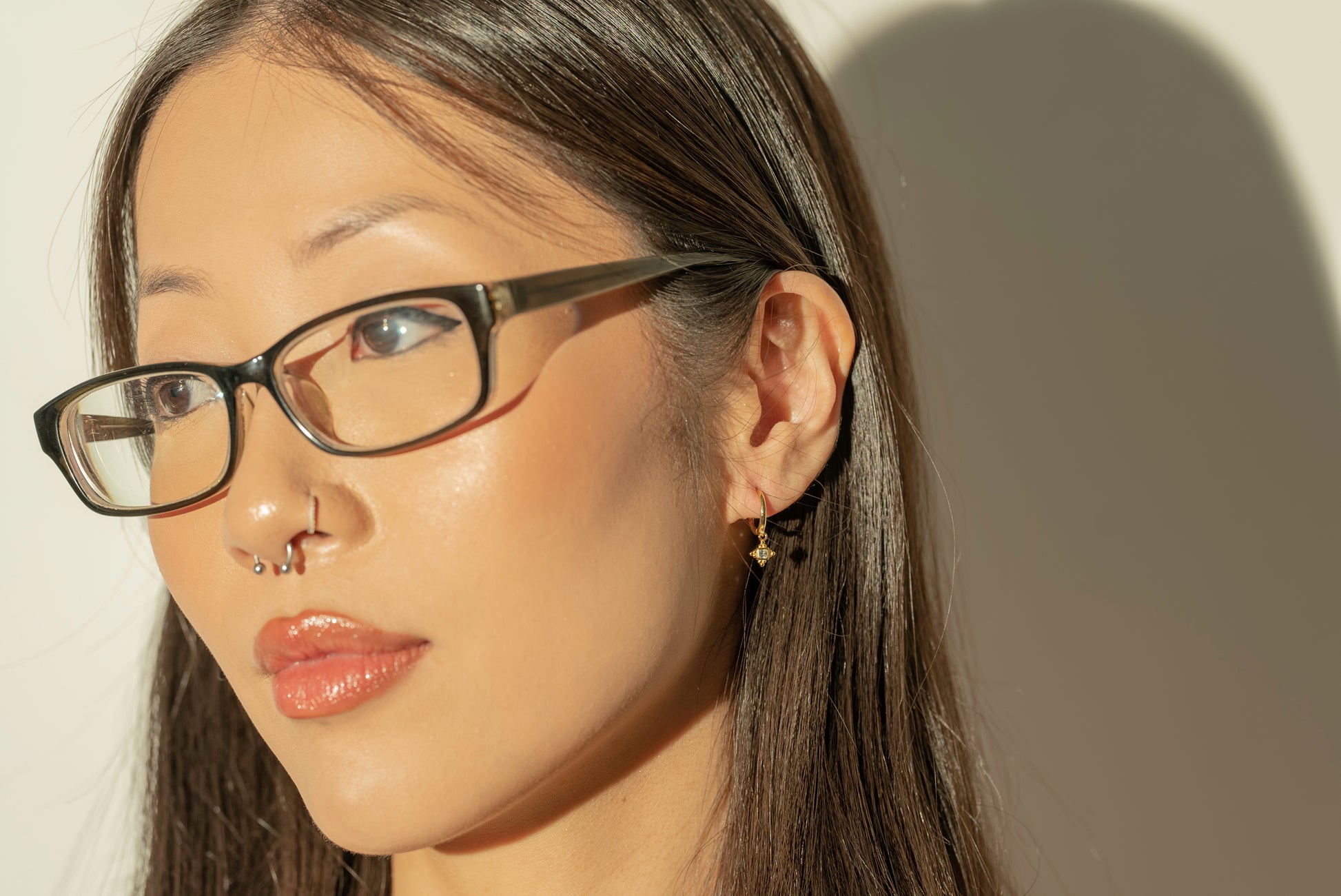 The Petite Diamond Hoops feature a finely crafted hoop with a dangling cubic zirconia charm, radiating subtle sparkle with each movement. Their petite scale makes them perfect for effortless wear~ whether styled as a pair for timeless elegance or as a single for a modern, asymmetric edge.