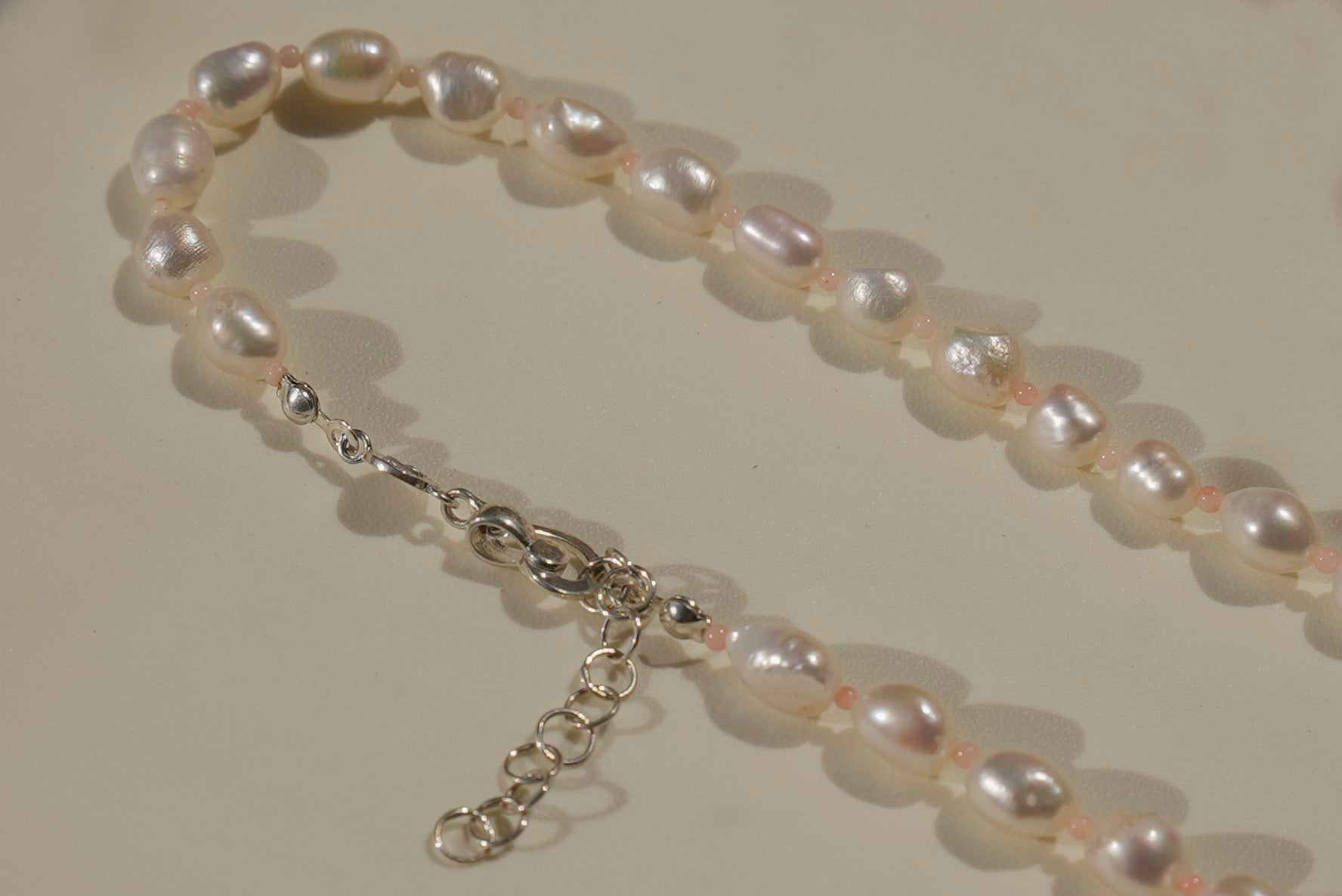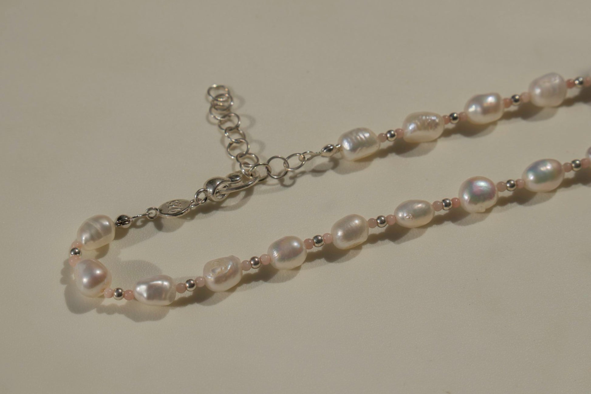 Pink Jade Necklace pairs genuine jade with luminous freshwater pearls, finished with our signature handmade closures. Its soft hues and natural textures create a timeless piece that feels both delicate and powerful, perfect for layering or wearing on its own.
