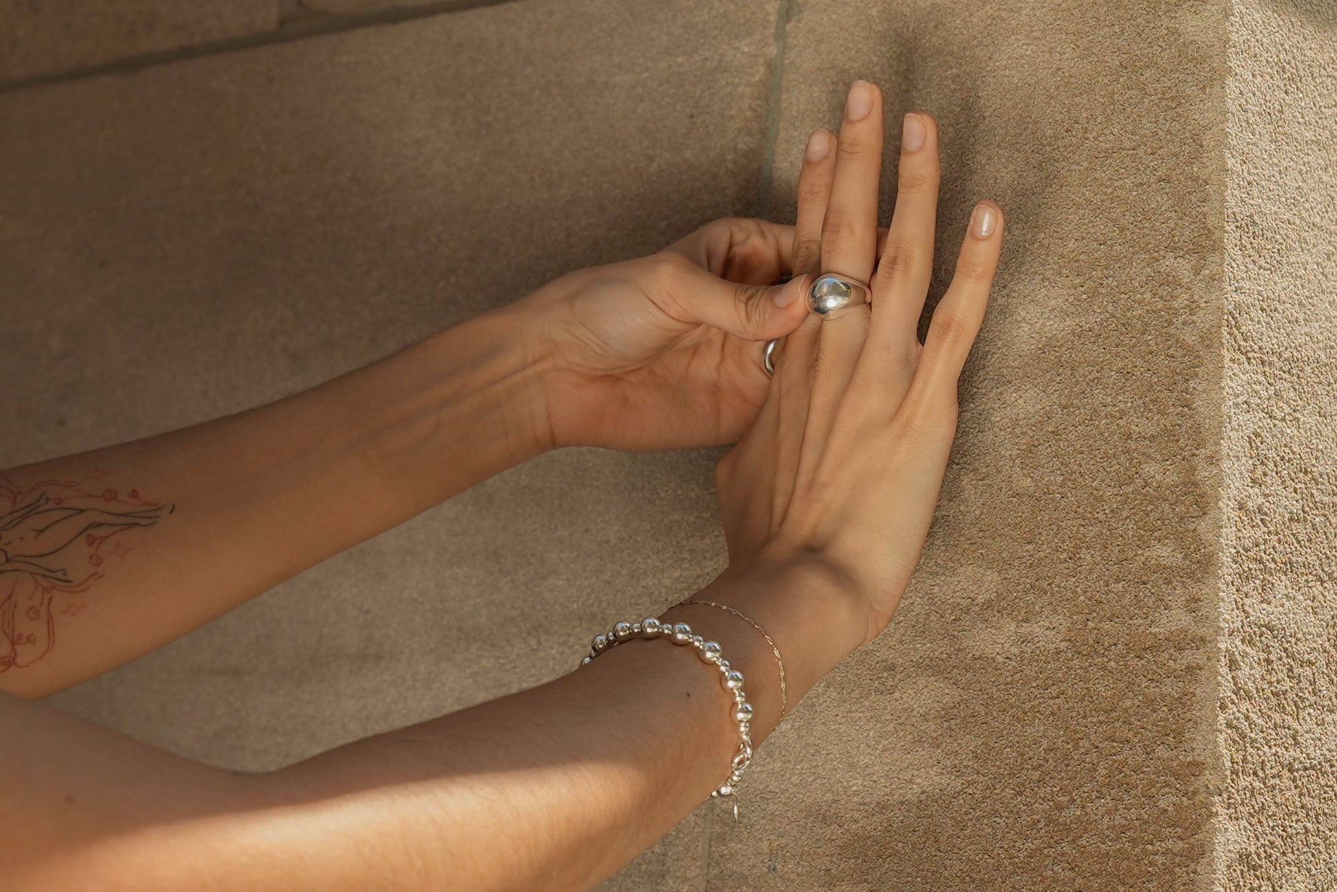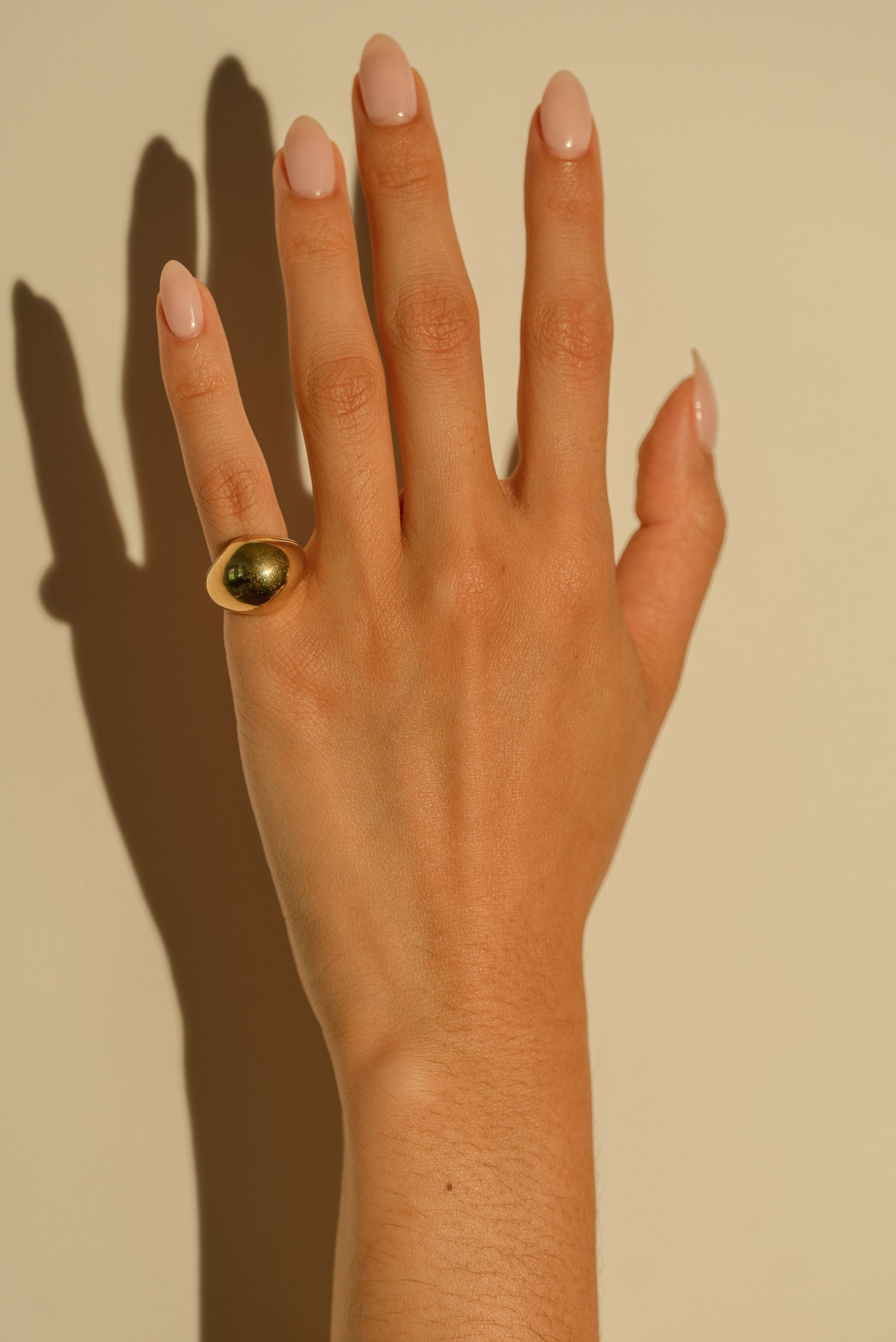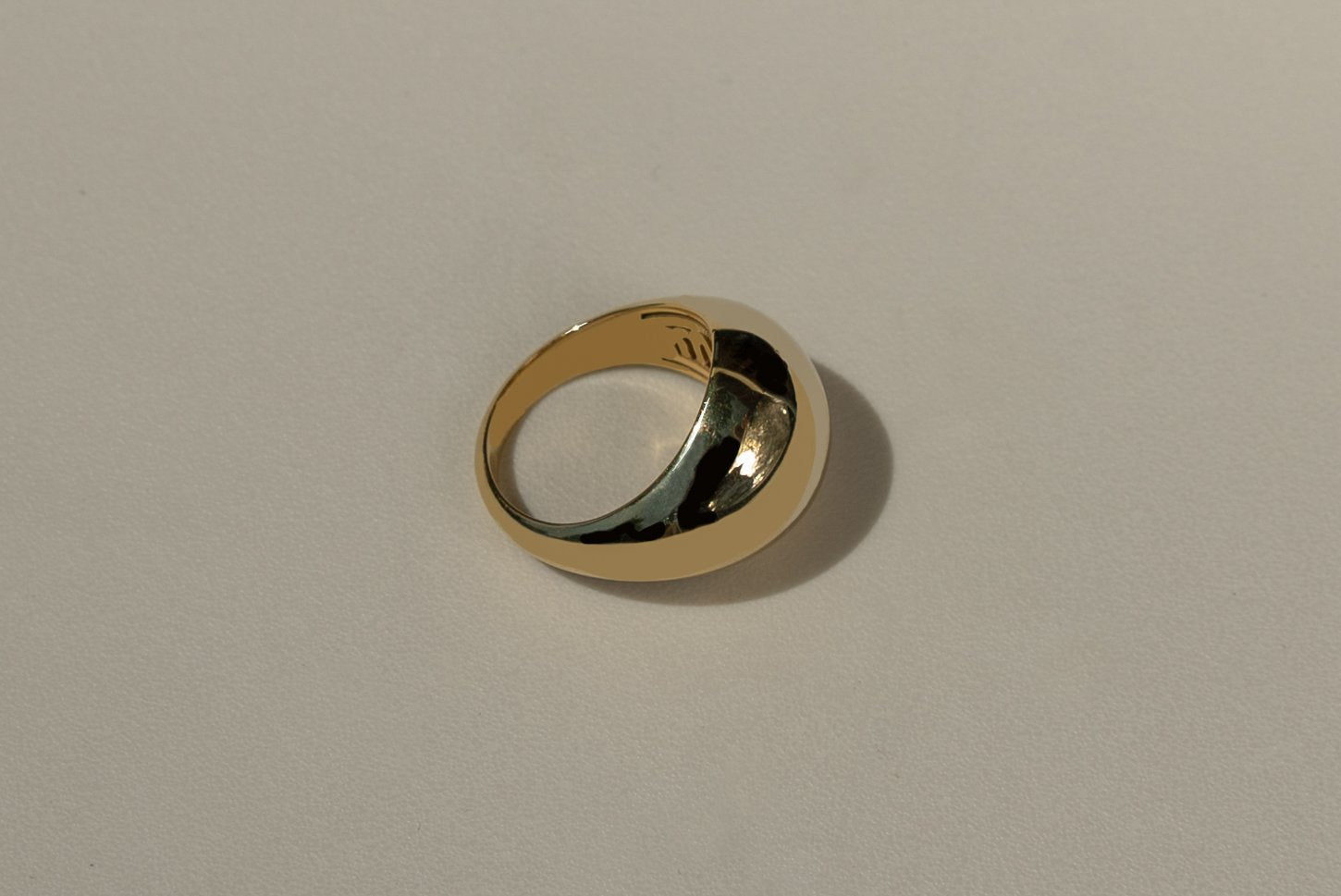 Pop Ring brings sculptural elegance to everyday wear. Its rounded, fluid form catches the light from every angle, while the smooth surface makes it as soft to the touch as it is striking on the hand. Designed with a hidden monogram detail inside, it’s a piece that celebrates both style and craftsmanship.
