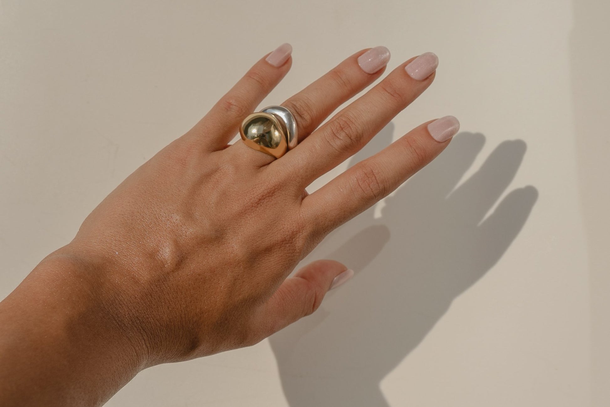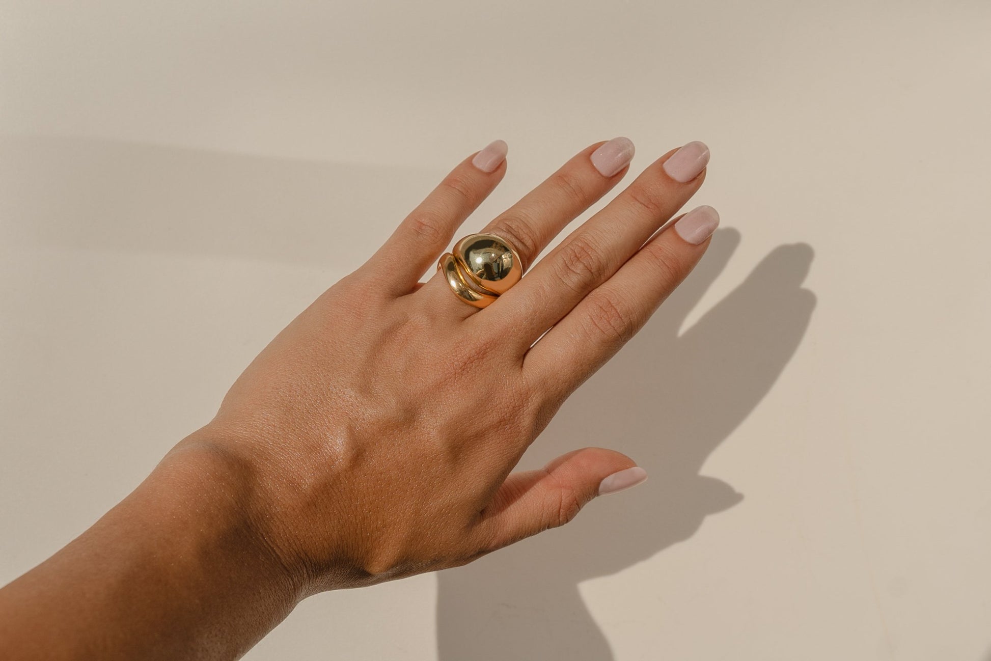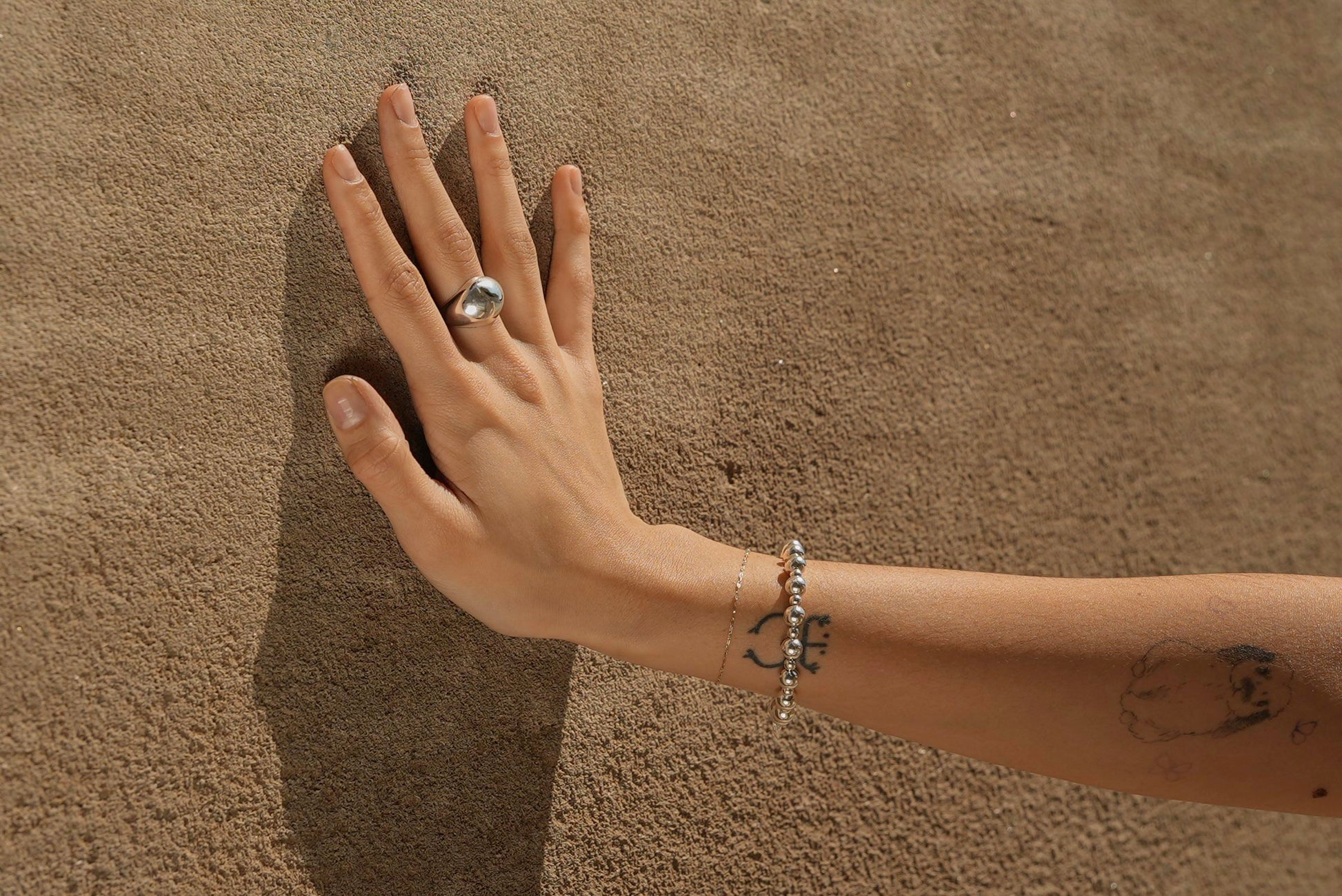 Pop Ring brings sculptural elegance to everyday wear. Its rounded, fluid form catches the light from every angle, while the smooth surface makes it as soft to the touch as it is striking on the hand. Designed with a hidden monogram detail inside, it’s a piece that celebrates both style and craftsmanship.