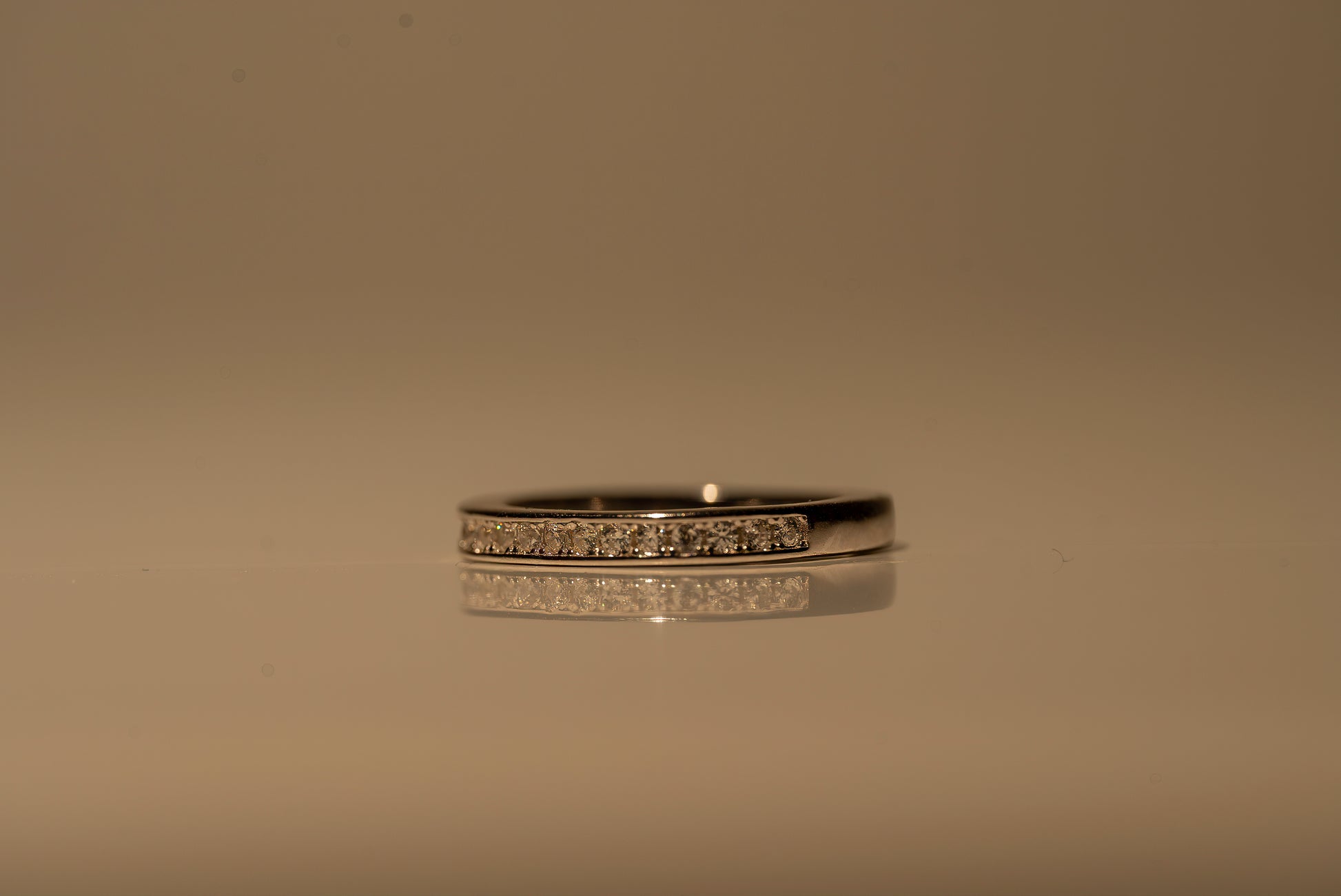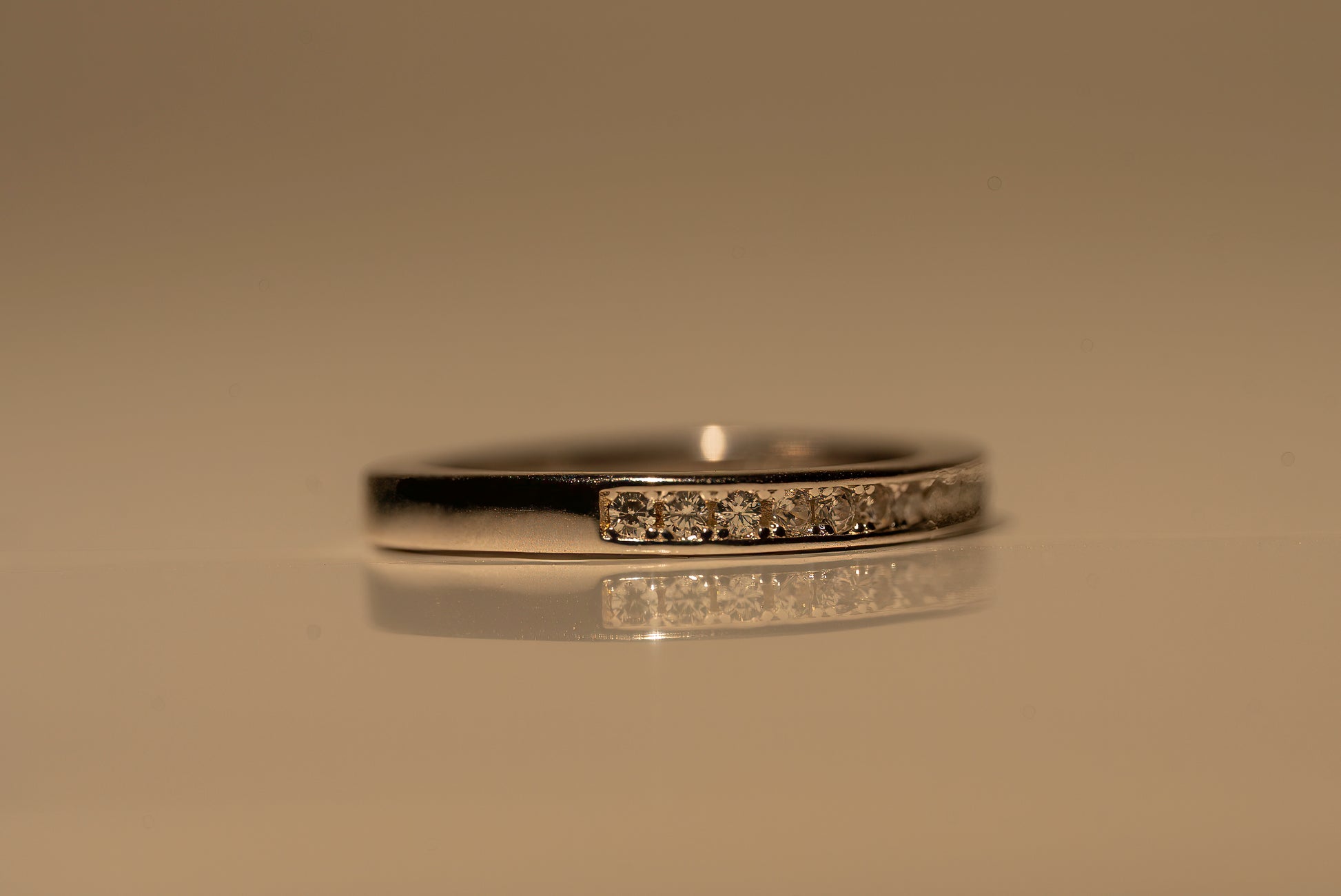 • Setting: A flush, anterior channel setting that protects the stones and creates a snag-free, continuous surface