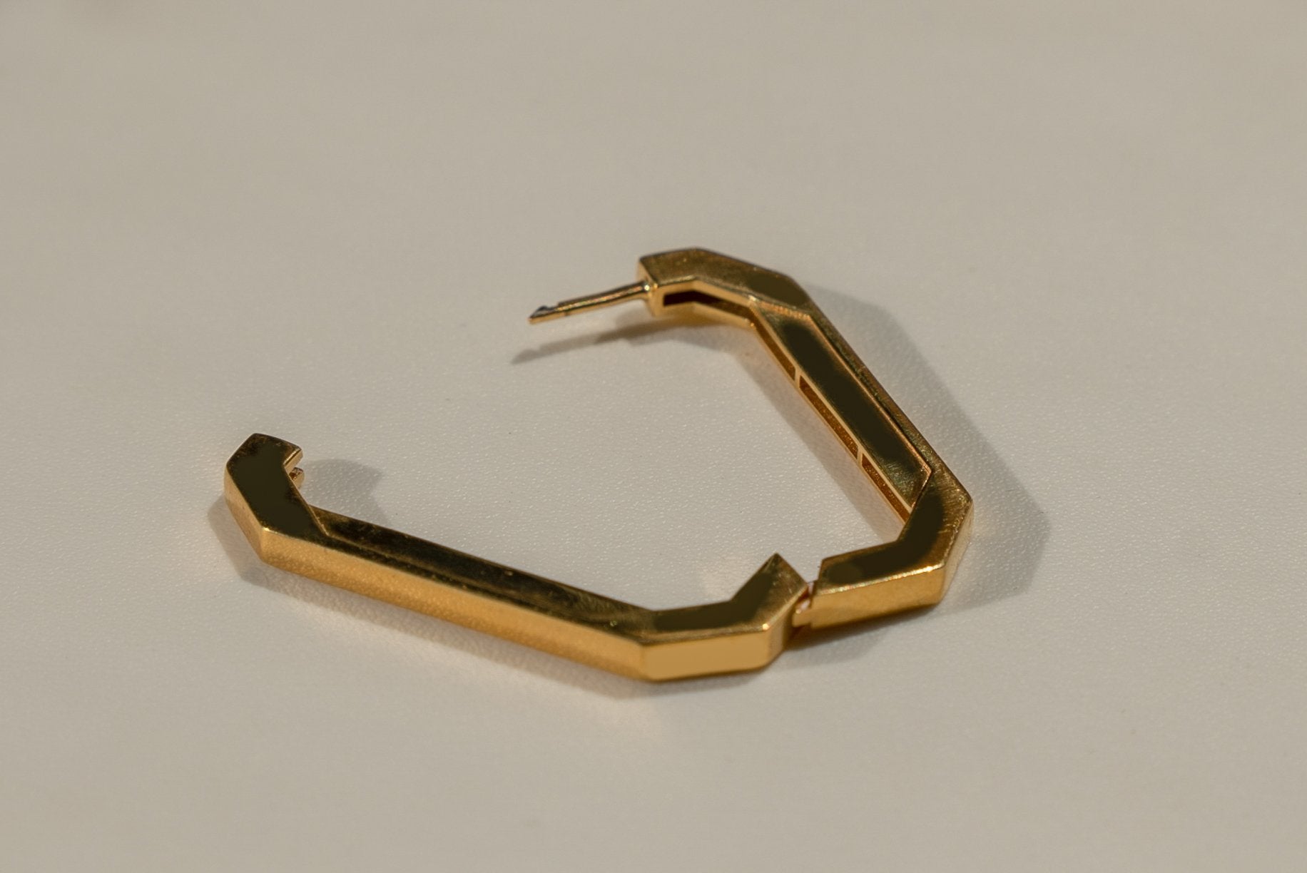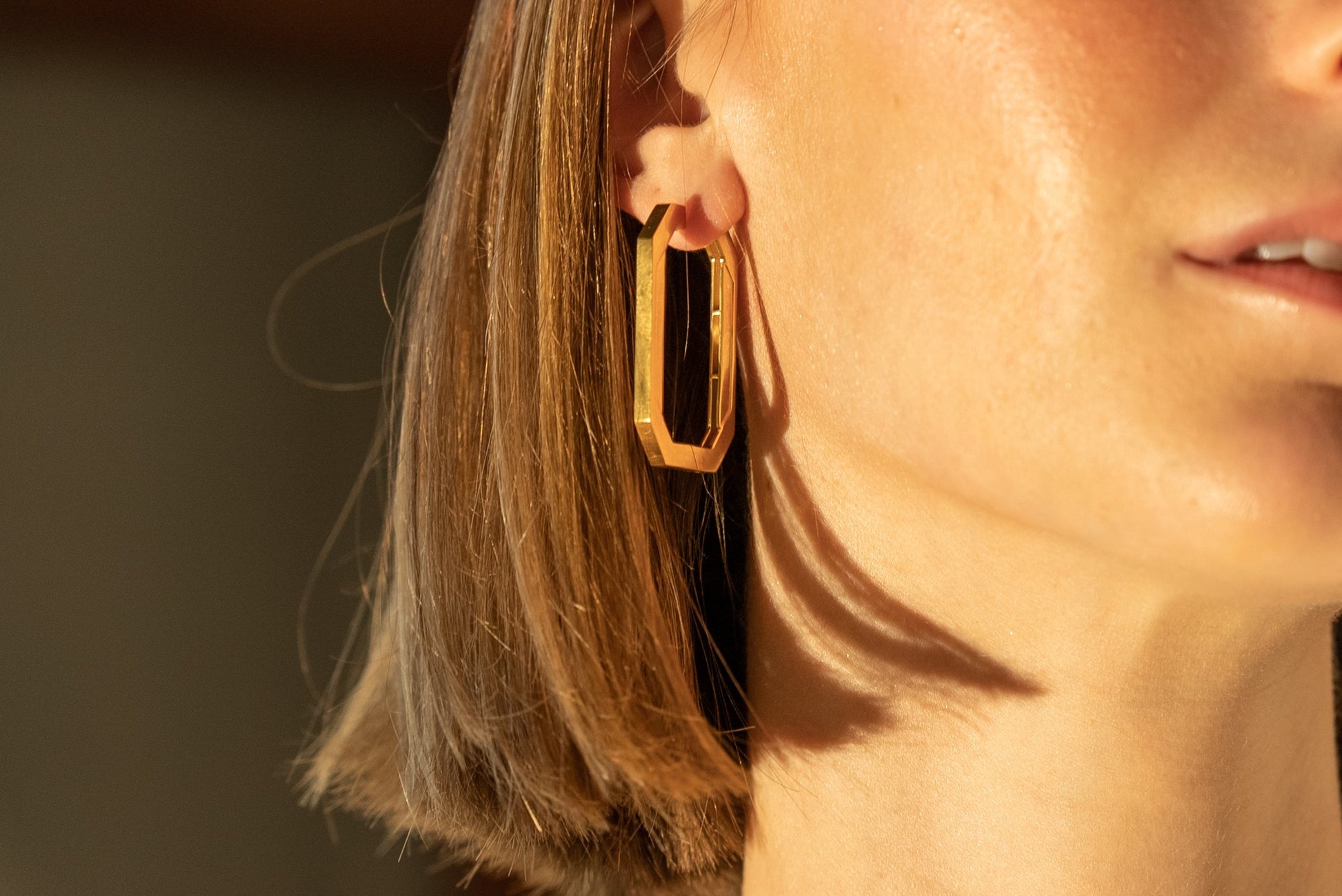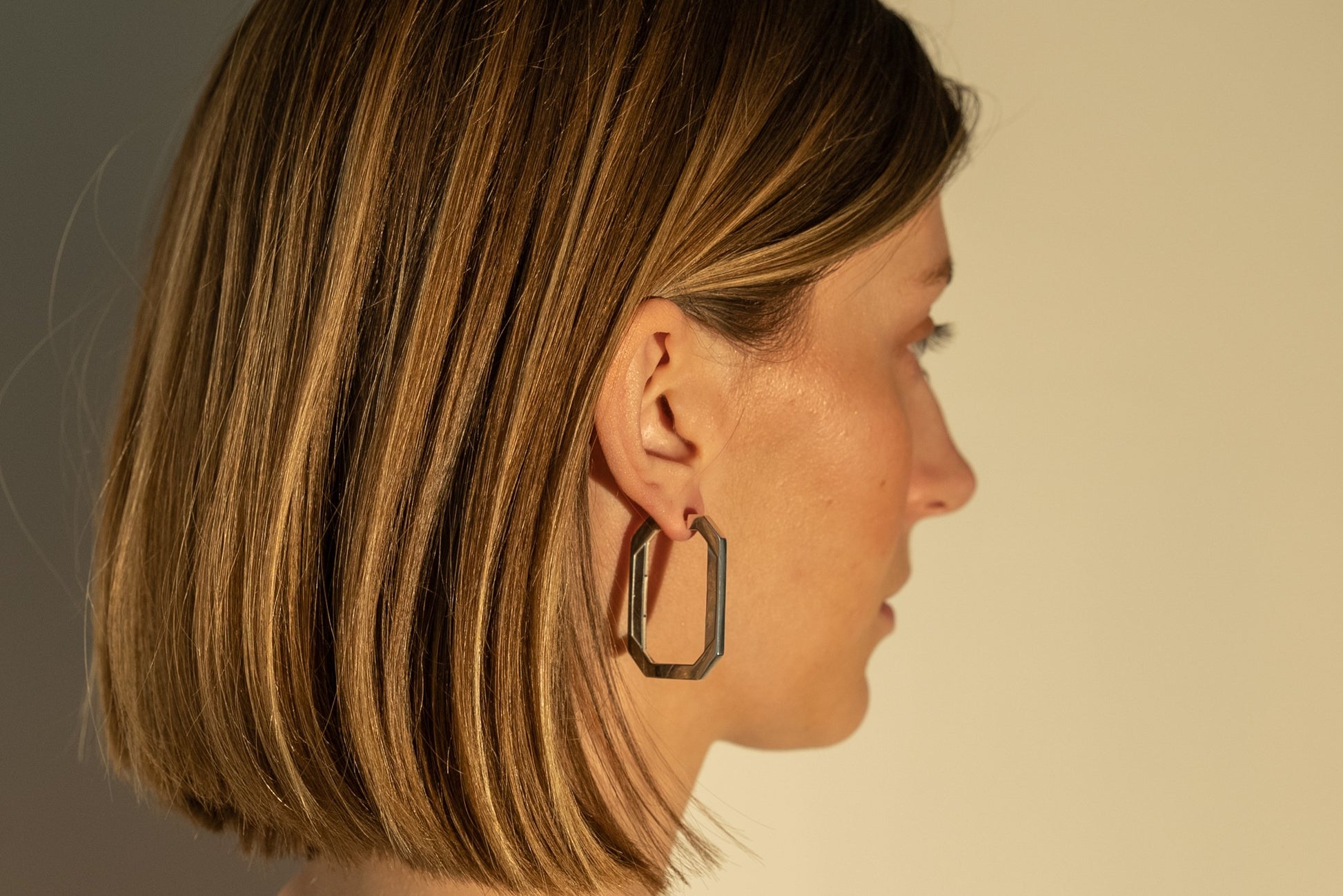 A bold evolution of the classic Geo Hoops, the Tall Geo Hoops feature elongated geometric links that bring striking dimension to any look. Handmade with clean edges and a polished finish, these sculptural earrings balance modern architecture with everyday wearability. Lightweight yet impactful, they’re designed to stand out on their own or complement the rest of the Geo collection.