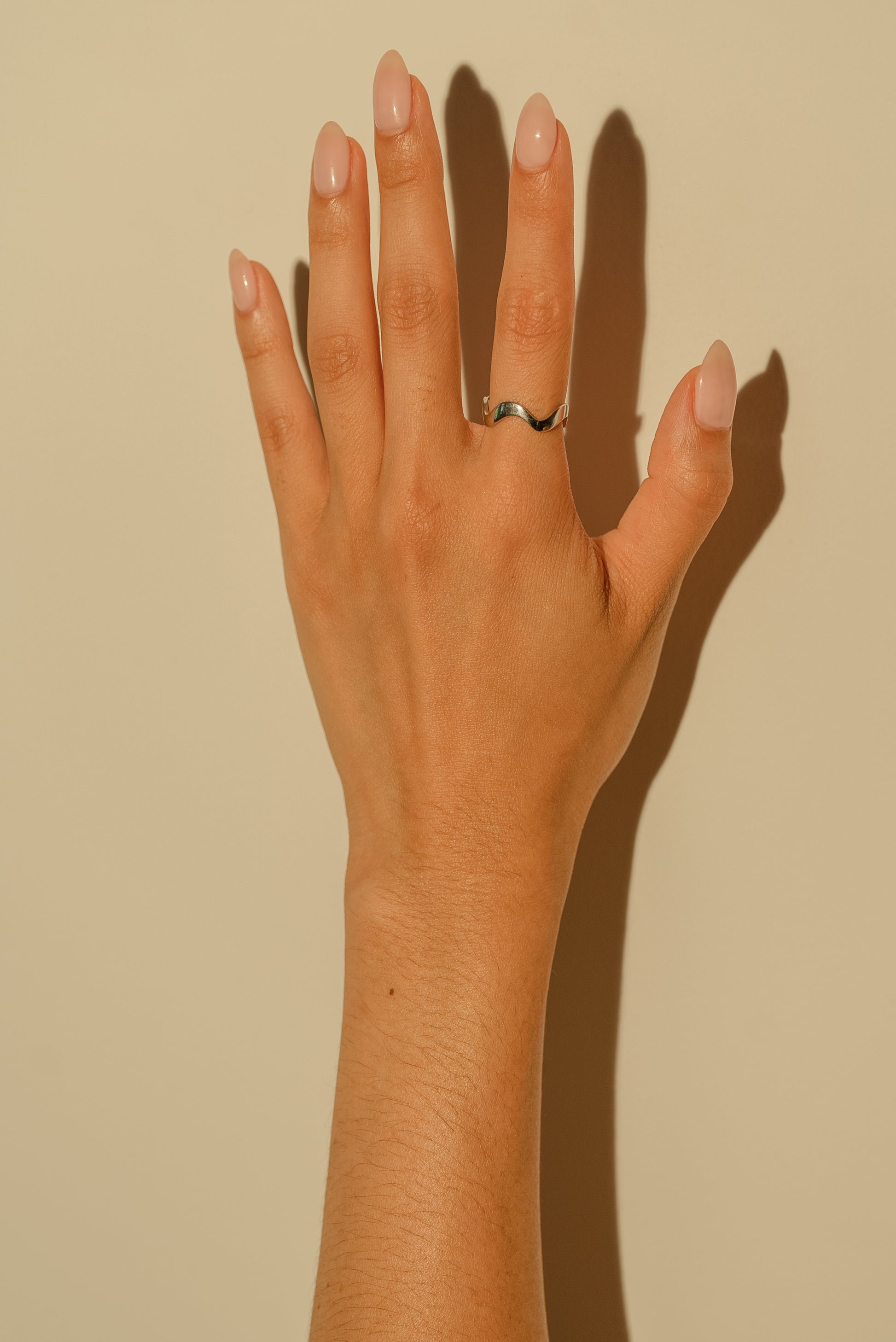 Designed with a soft, undulating silhouette, this piece mirrors the effortless movement of water ~ balancing minimalism with organic form. Its open, adjustable band ensures a custom fit.