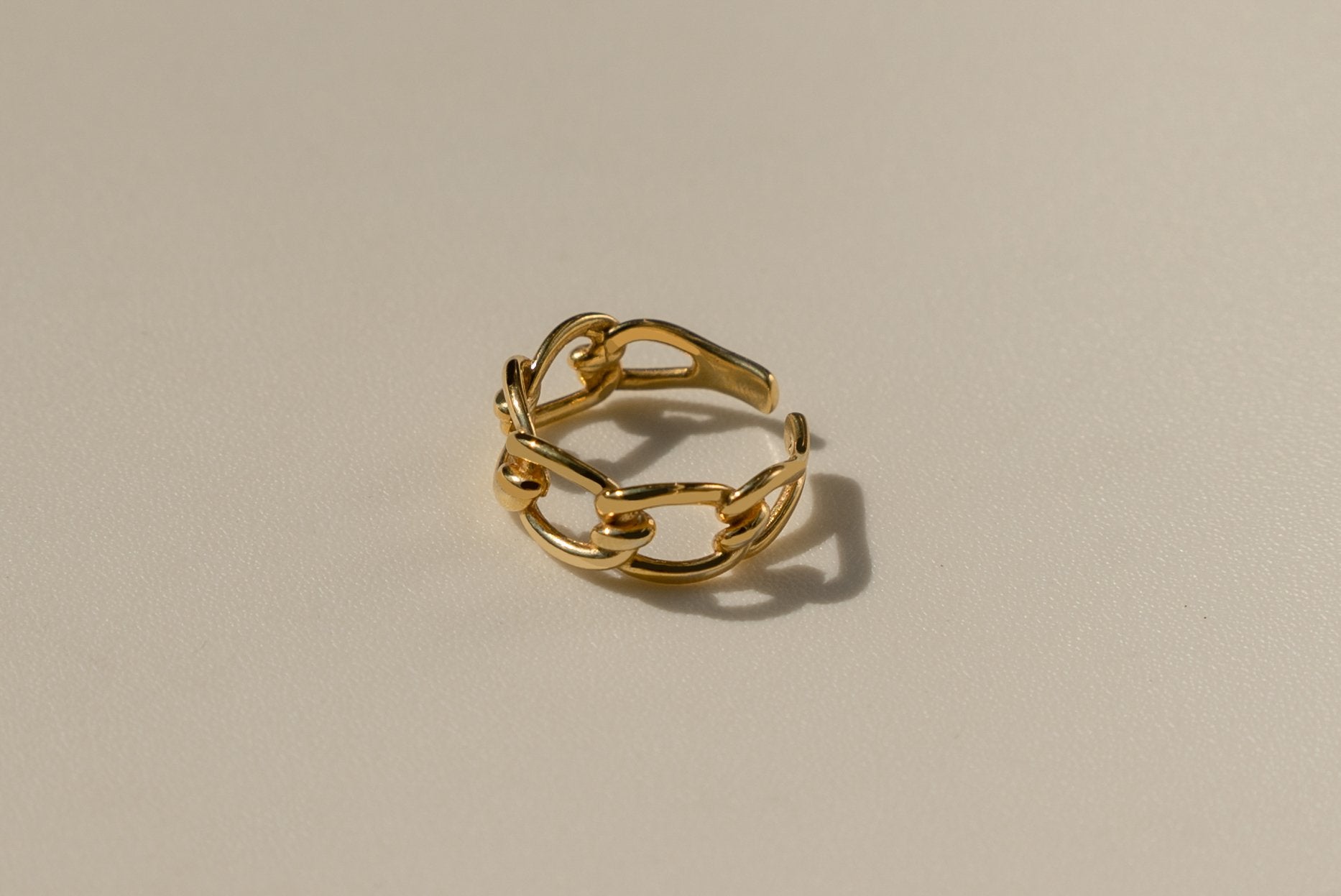 Wire Adjustable Ring features an open-link design that feels both bold and lightweight. Its fluid, wire-like structure gives the illusion of movement while maintaining a polished, sculptural finish. With its adjustable fit, it’s a statement piece that adapts effortlessly to your style.